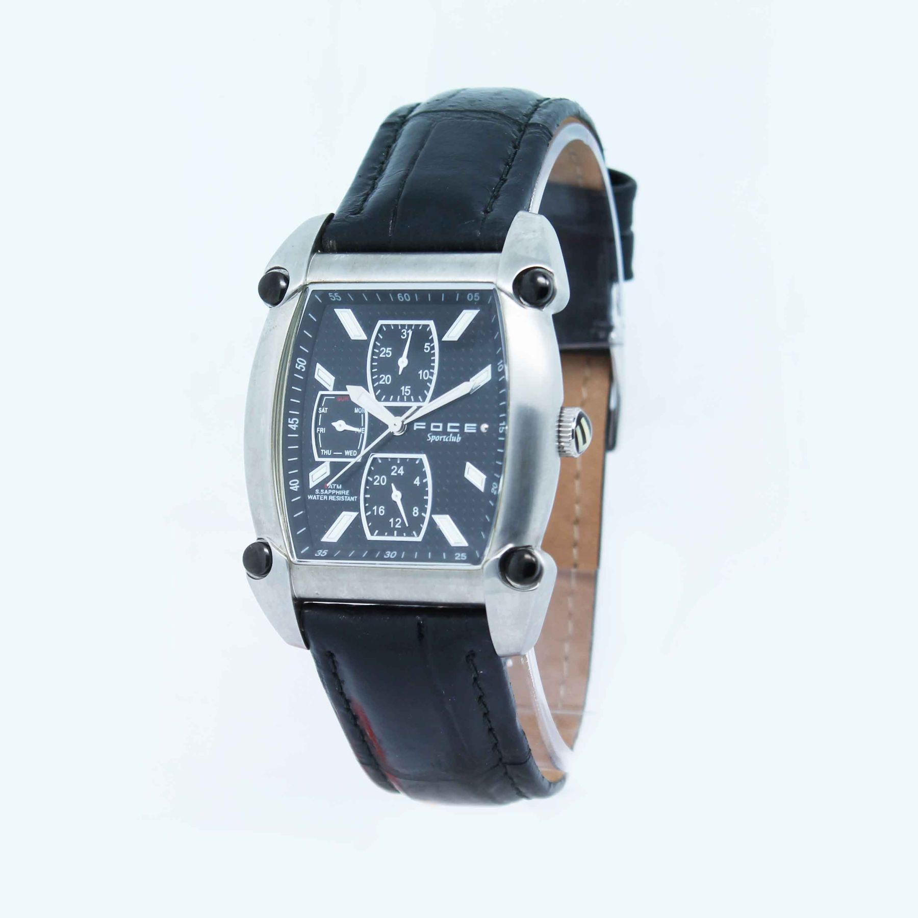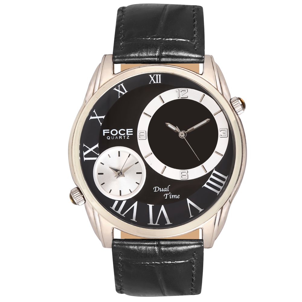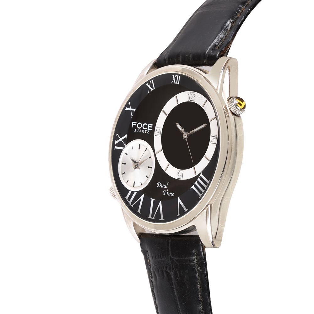 Black Dial Leather Strap Watch