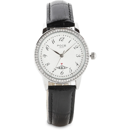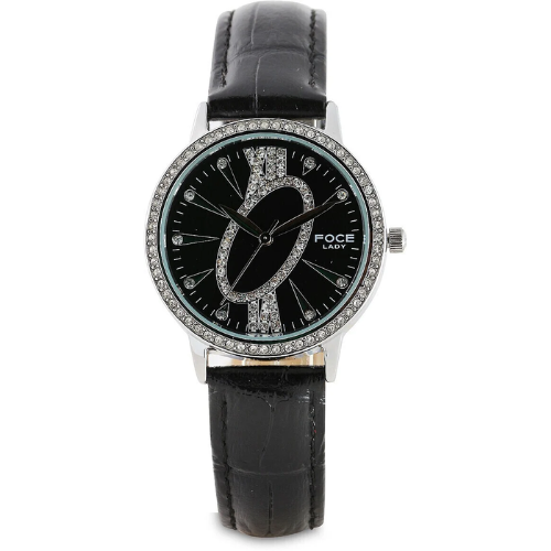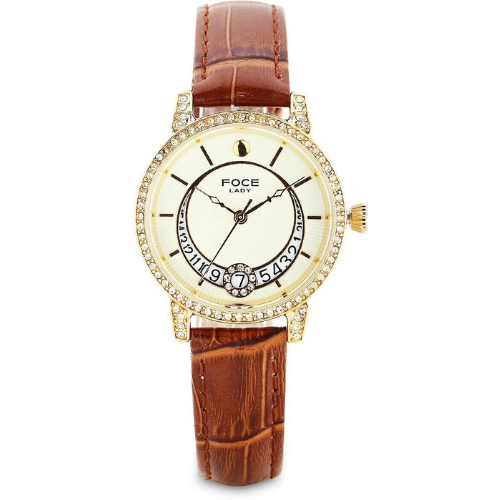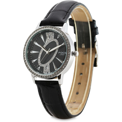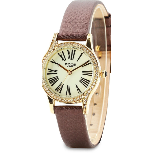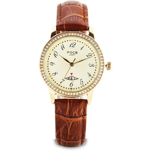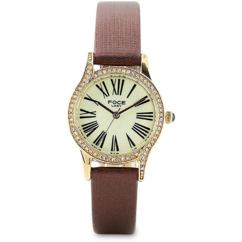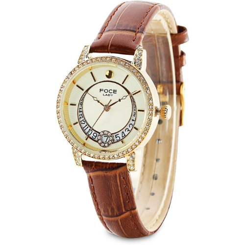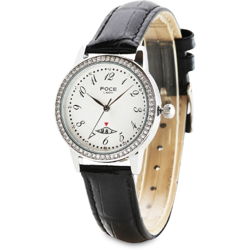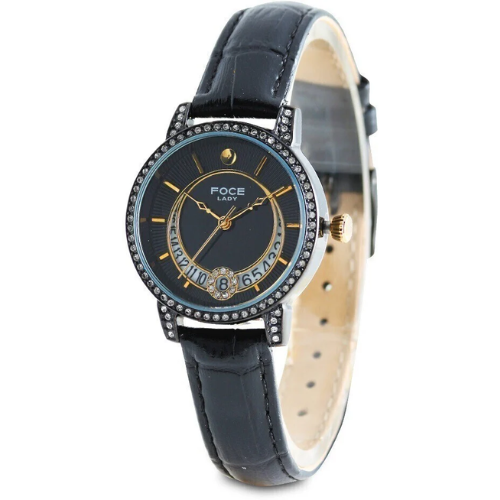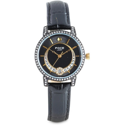 Curved Dome Glass Golden Watch, Black Leather Strap watch