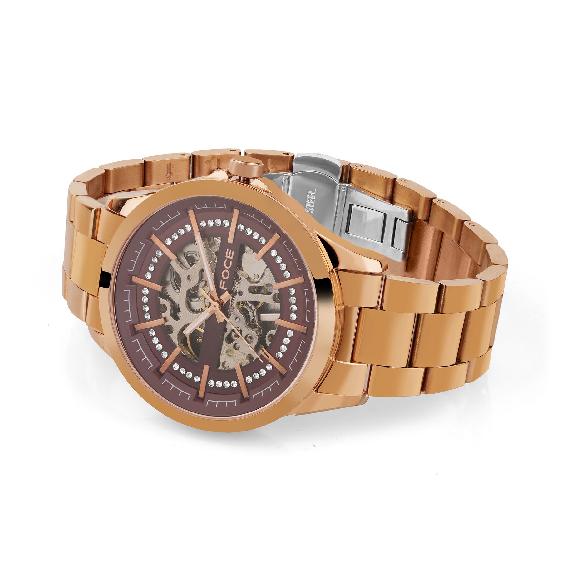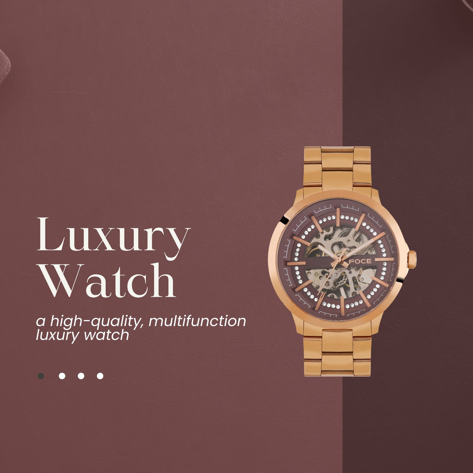 Unveil timeless sophistication with our FOCE premium automatic watch, featuring a crystal-studded sapphire dial and sleek skeleton see-through case.