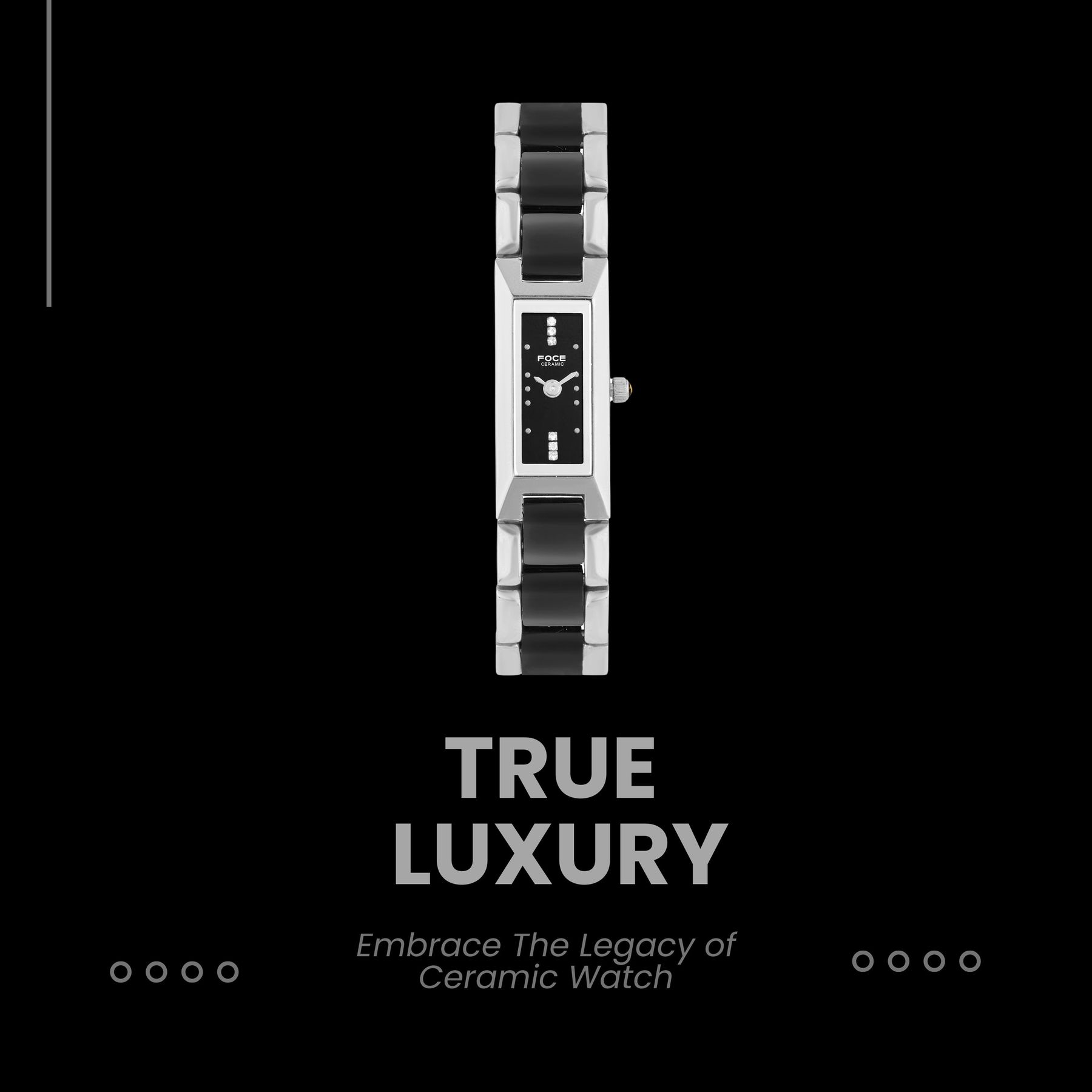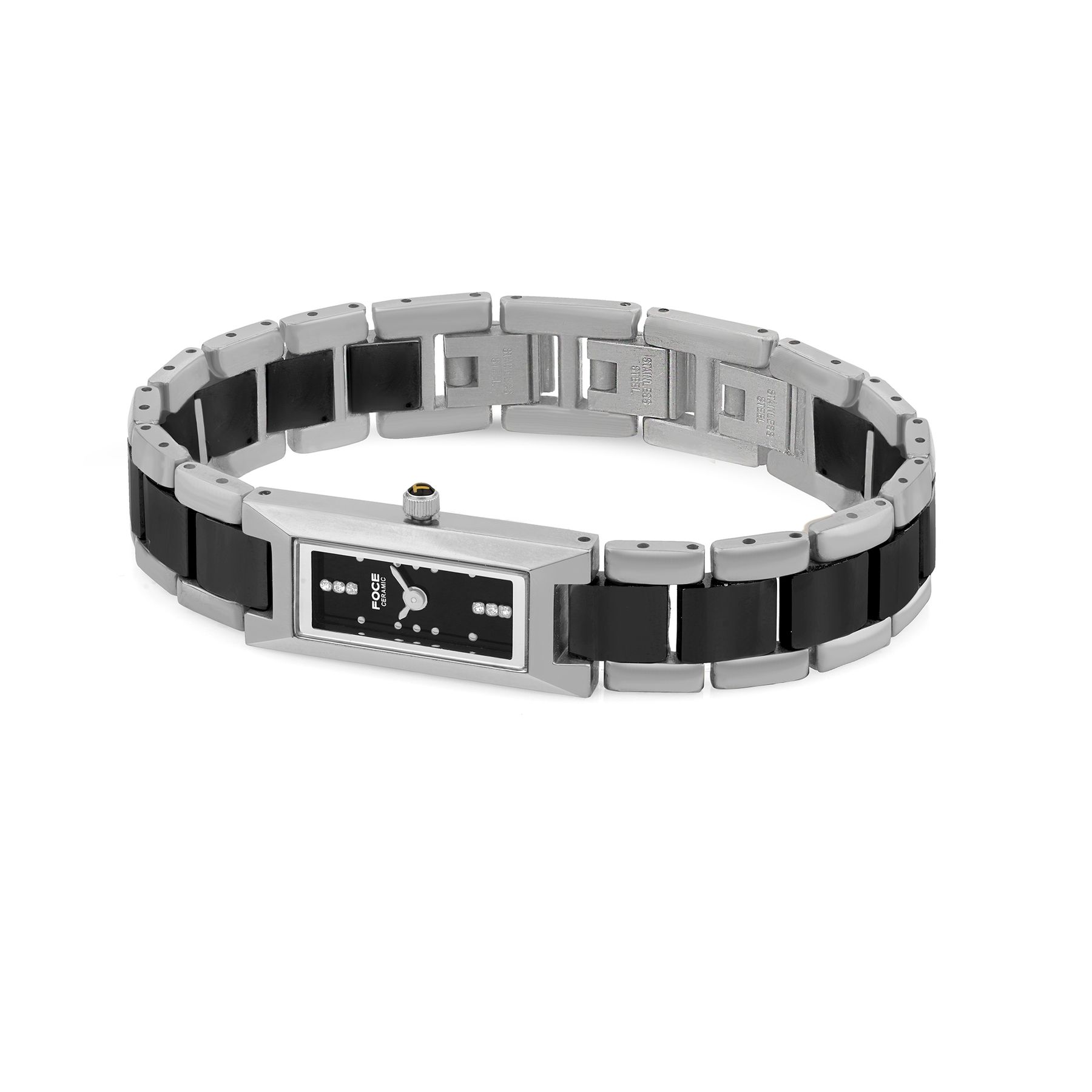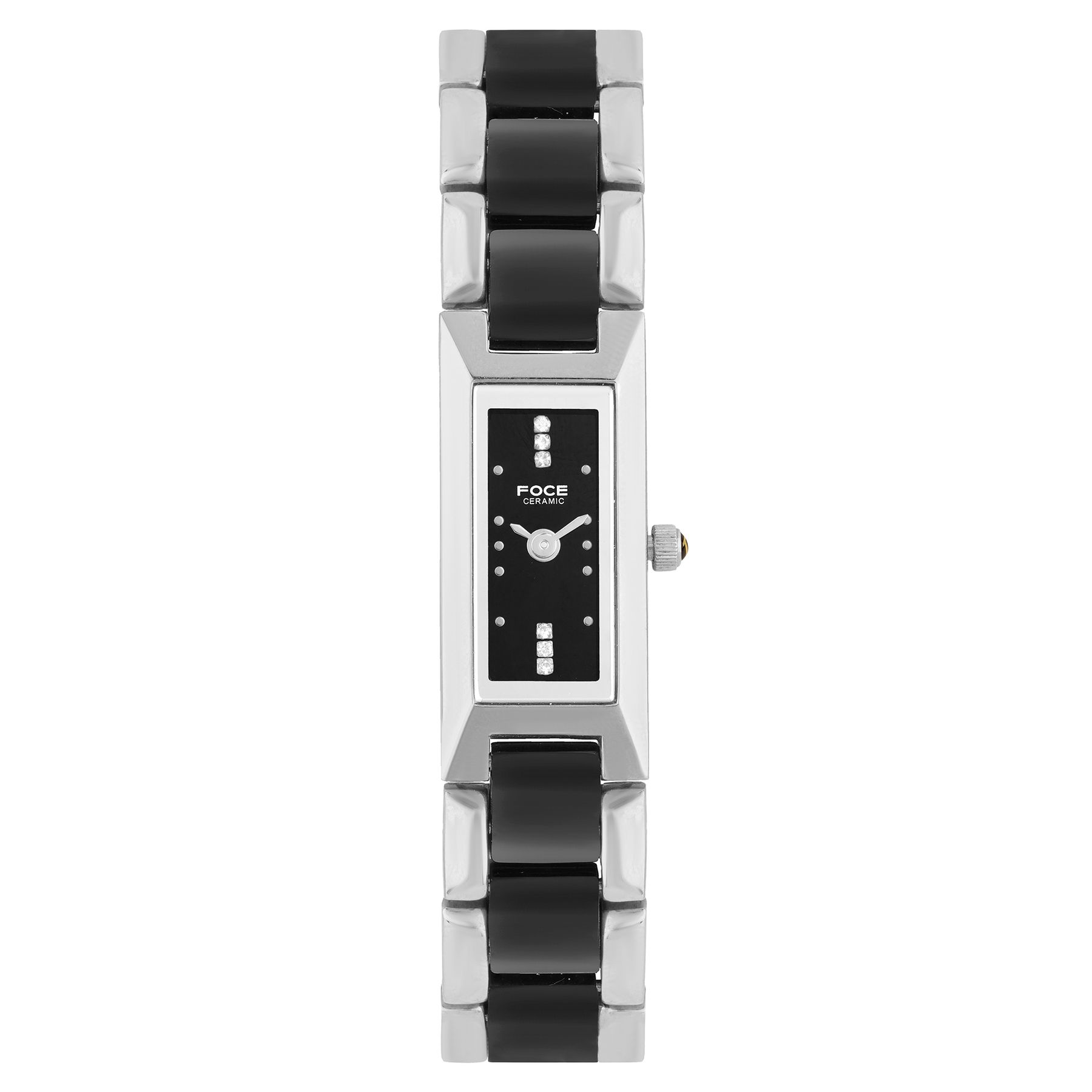 Elevate your elegance with FOCE’s ultra-thin black dial ceramic watch, featuring a dual-tone stainless steel and ceramic strap. Combining contemporary sophistication with timeless craftsmanship, this premium timepiece ensures lasting style and exceptional durability for the modern woman.
