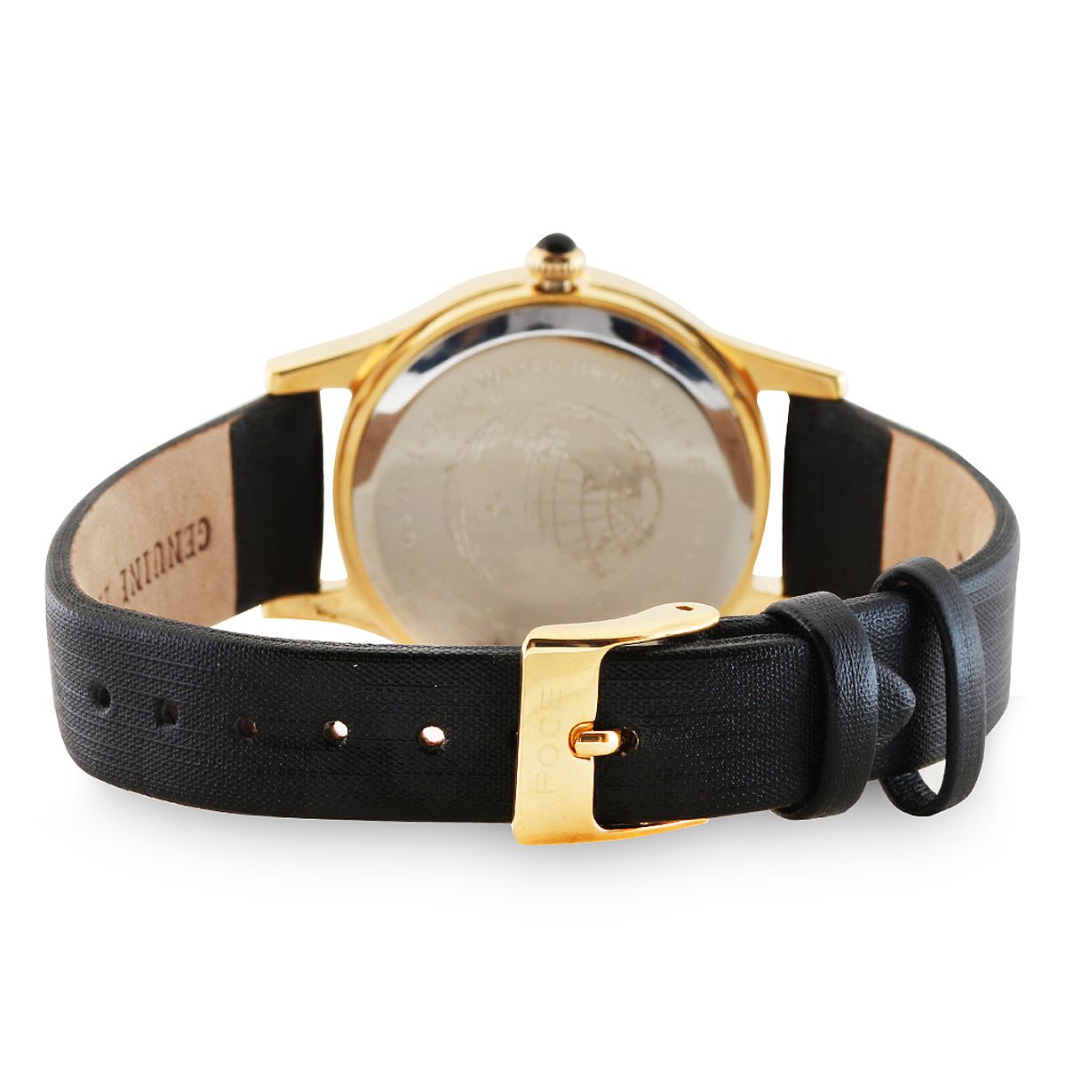 FOCE Black Dial Leather Strap Watch for Women blends classic sophistication with modern style.