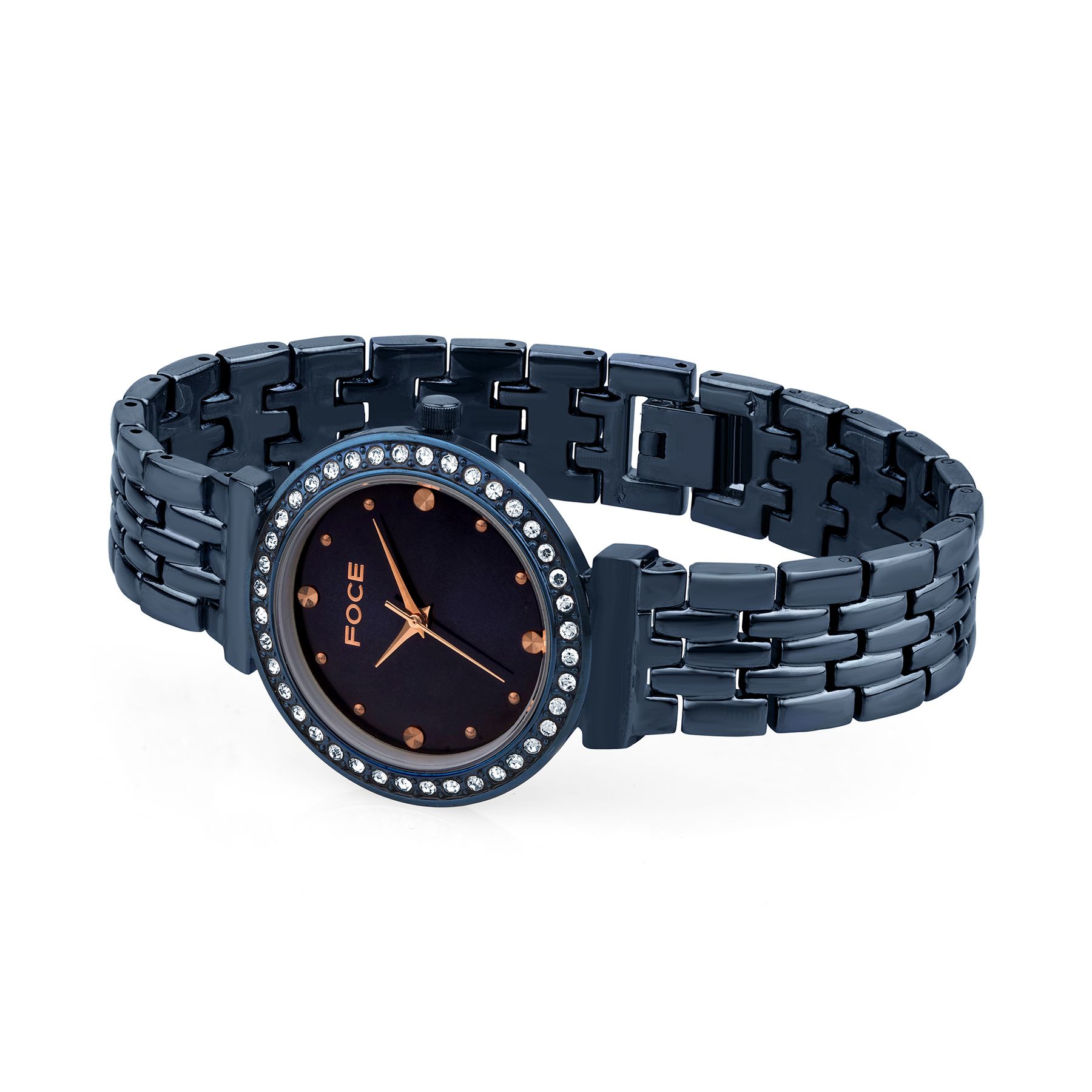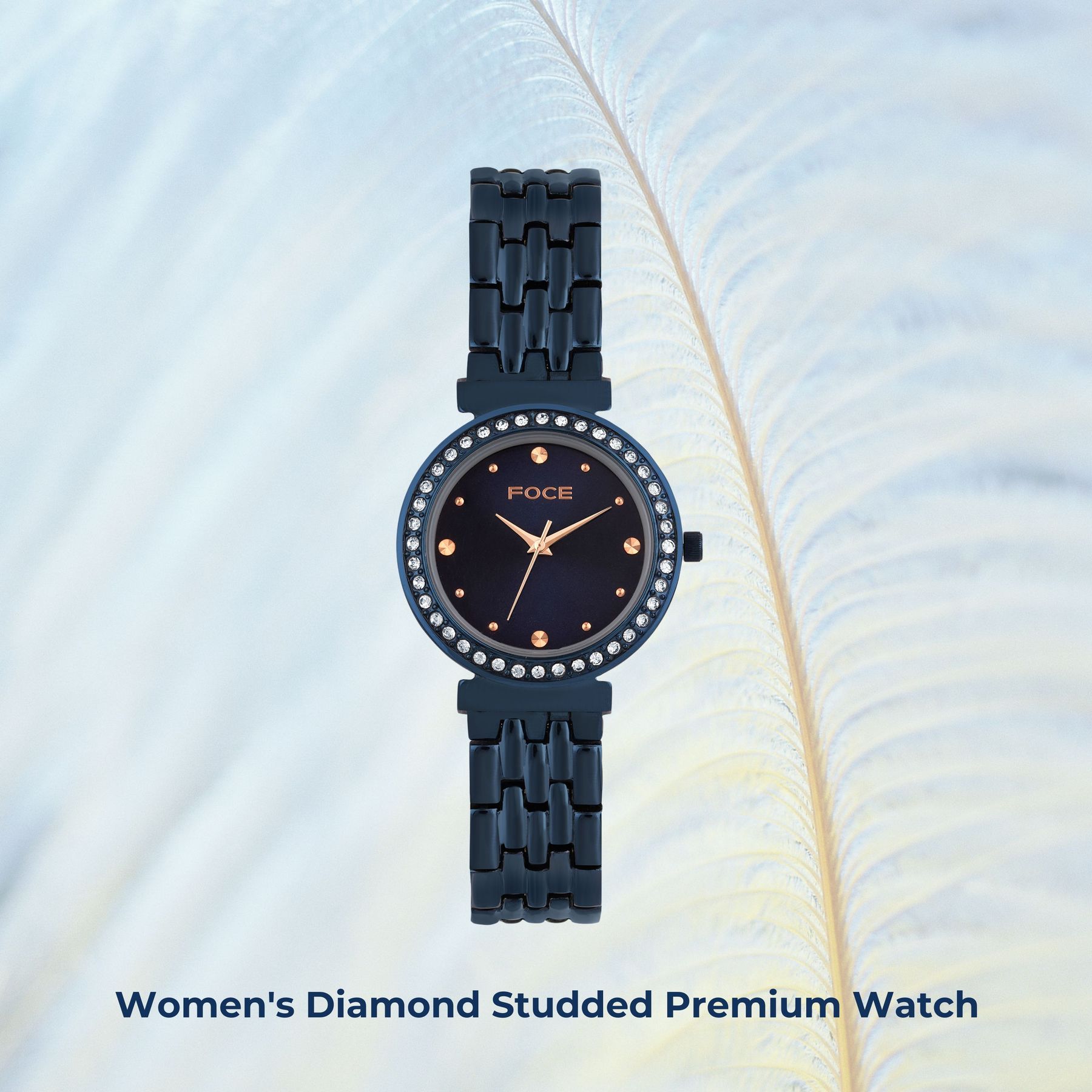 Indulge in refined elegance with the FOCE Diamond-Studded Women’s Watch, featuring a radiant dark-blue dial and sapphire glass.