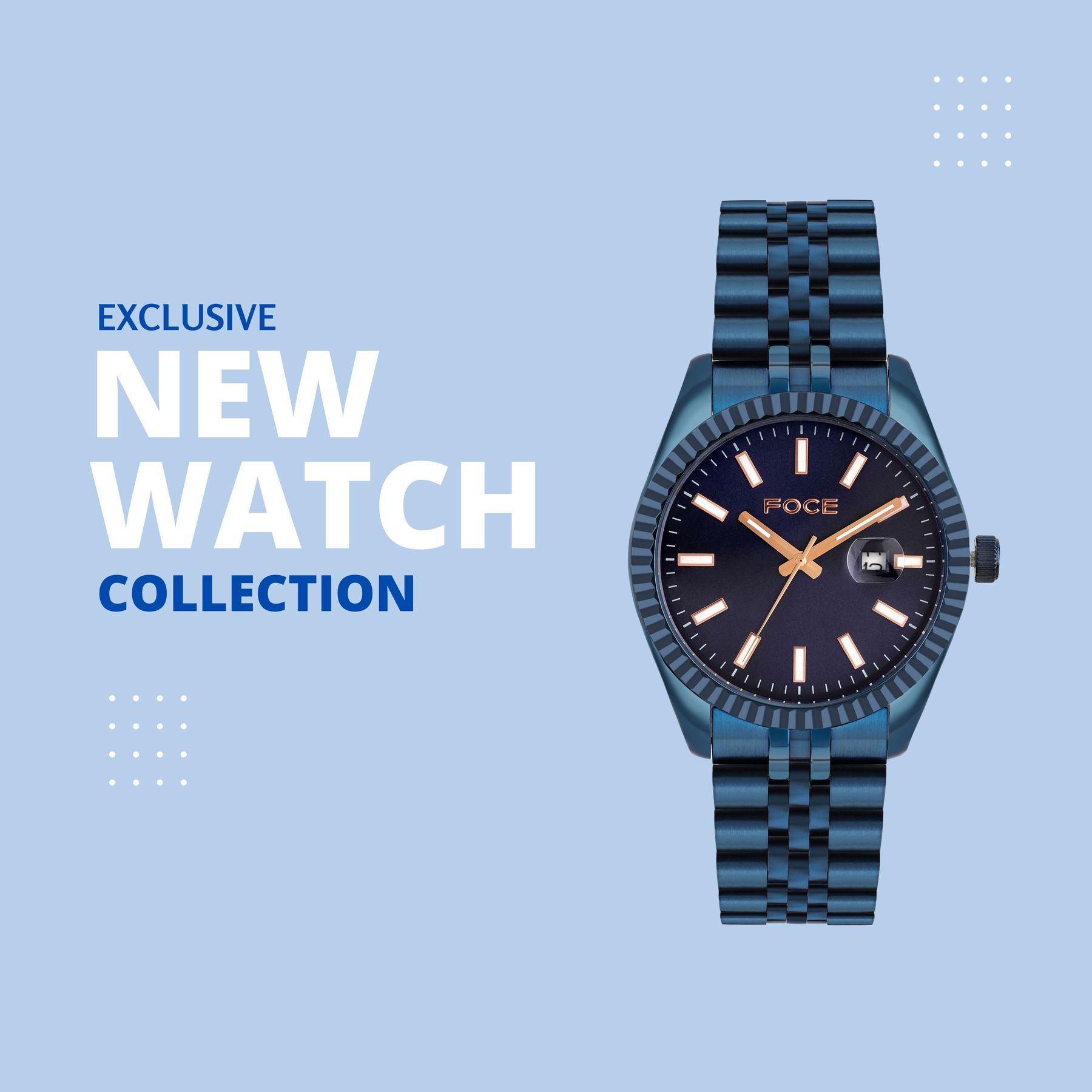 Experience timeless elegance with this FOCE premium timepiece, crafted in pure stainless steel and enriched with bold blue plating.