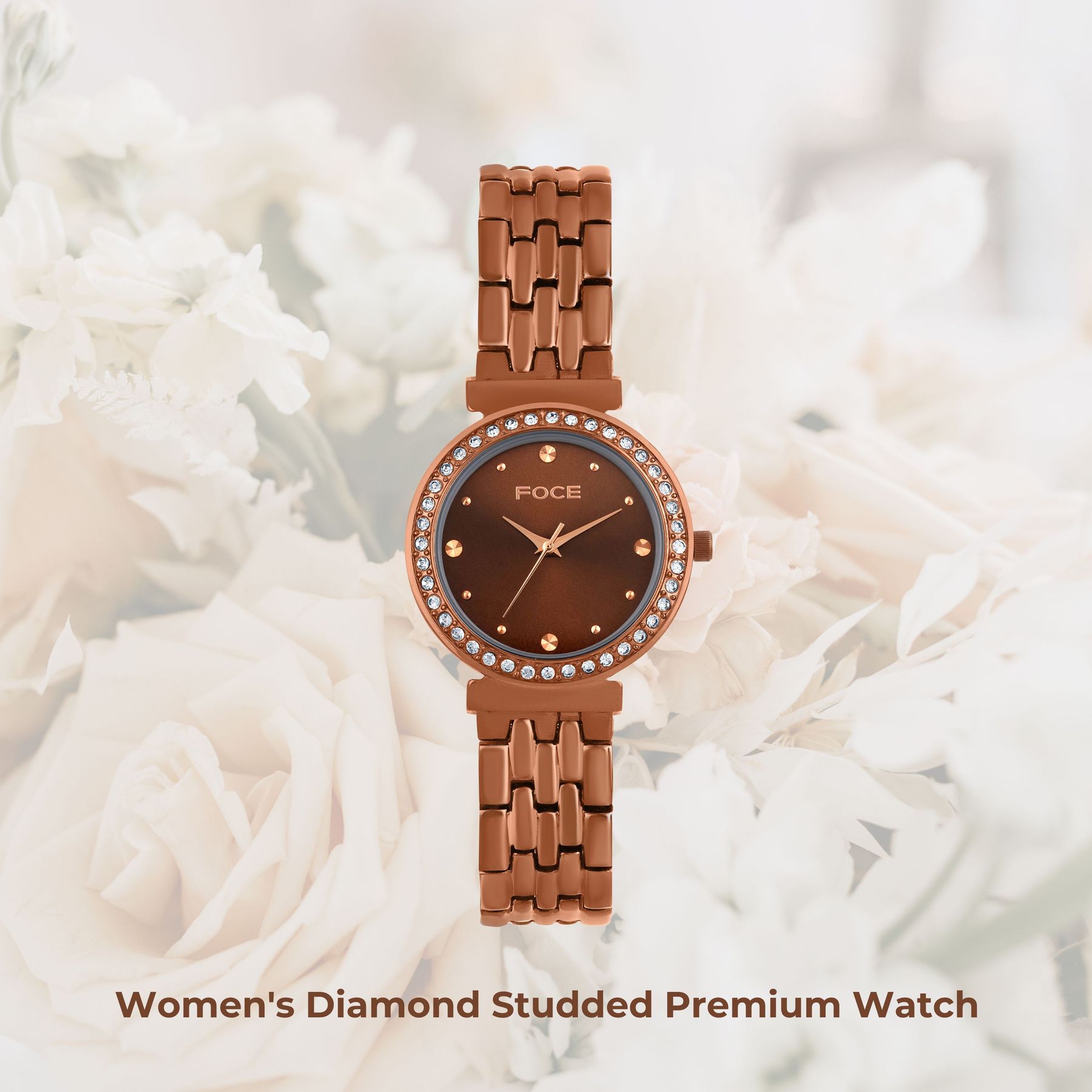 Indulge in refined elegance with the FOCE Diamond-Studded Women’s Watch, featuring a radiant dark-brown dial and sapphire glass.
