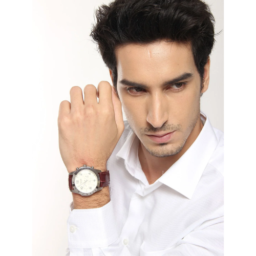 Elevate your everyday look with FOCE’s Chronograph Watch, featuring a sophisticated cream dial and genuine leather strap.