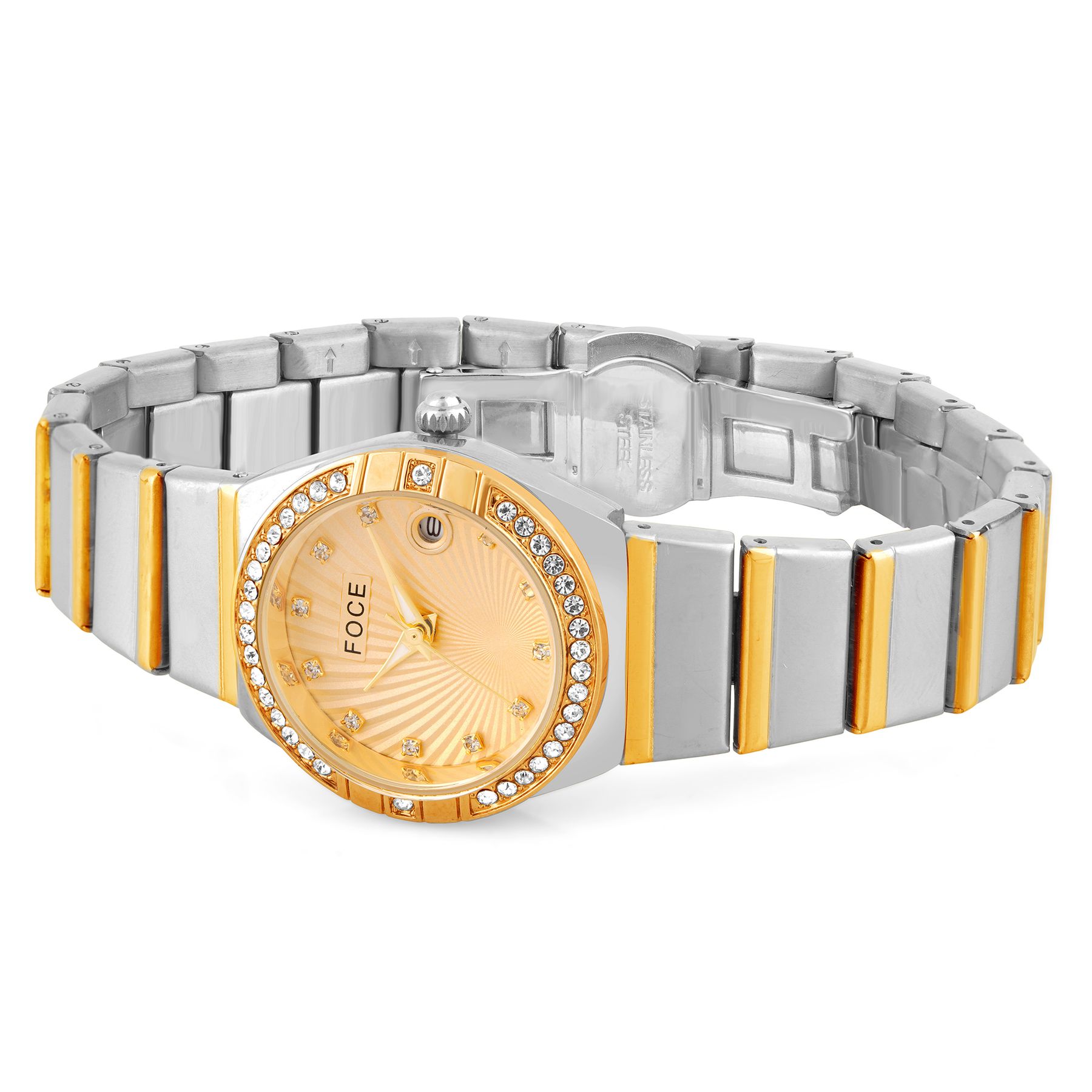 Grace your wrist with the FOCE Women’s Rose Gold Analog Watch, adorned with a radiant white dial, diamond-studded bezel, and elegant rose-gold stainless steel strap.