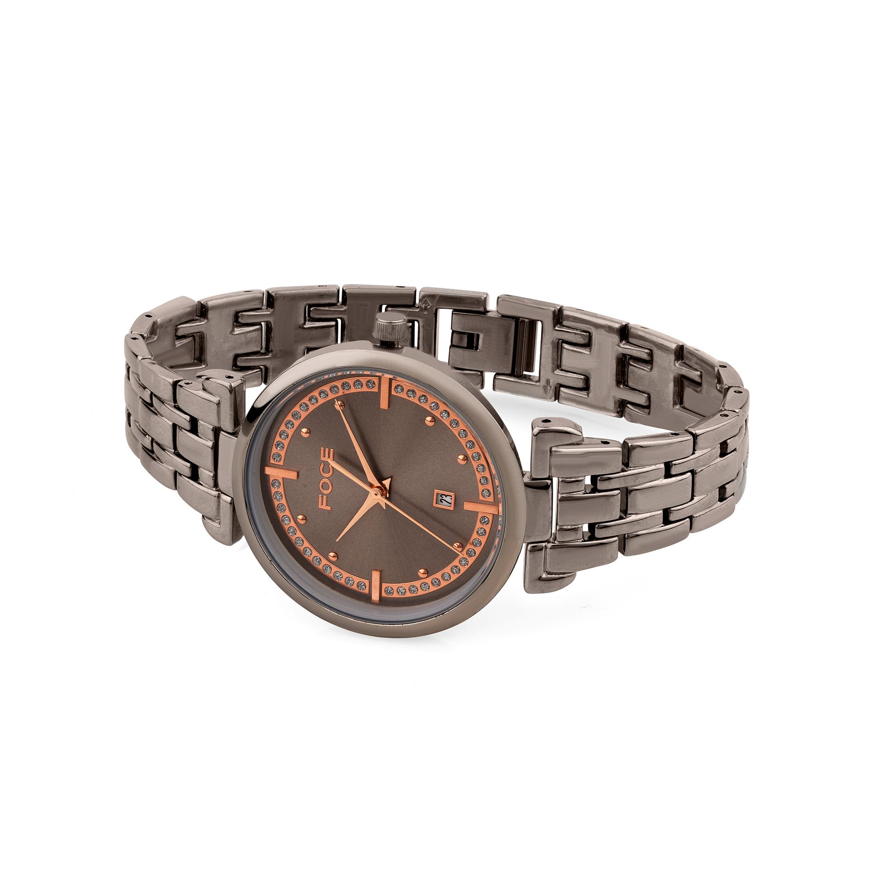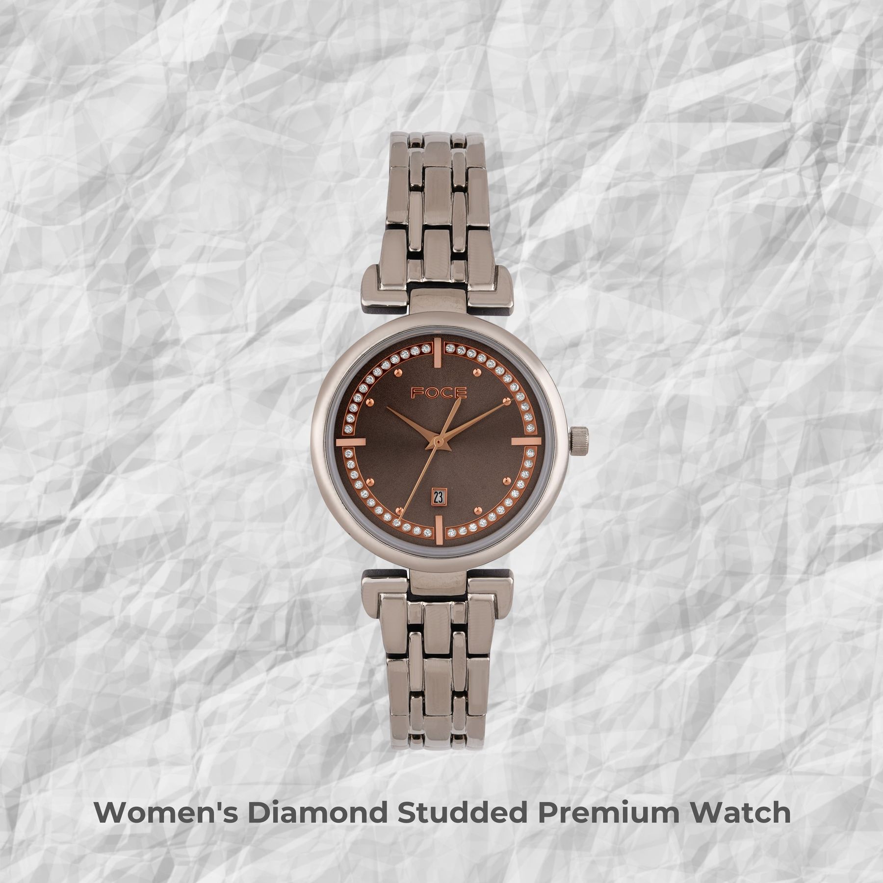 Embrace elegance with the FOCE Diamond-Studded Women’s Watch, featuring a rich grey dial and a shimmering bezel.
