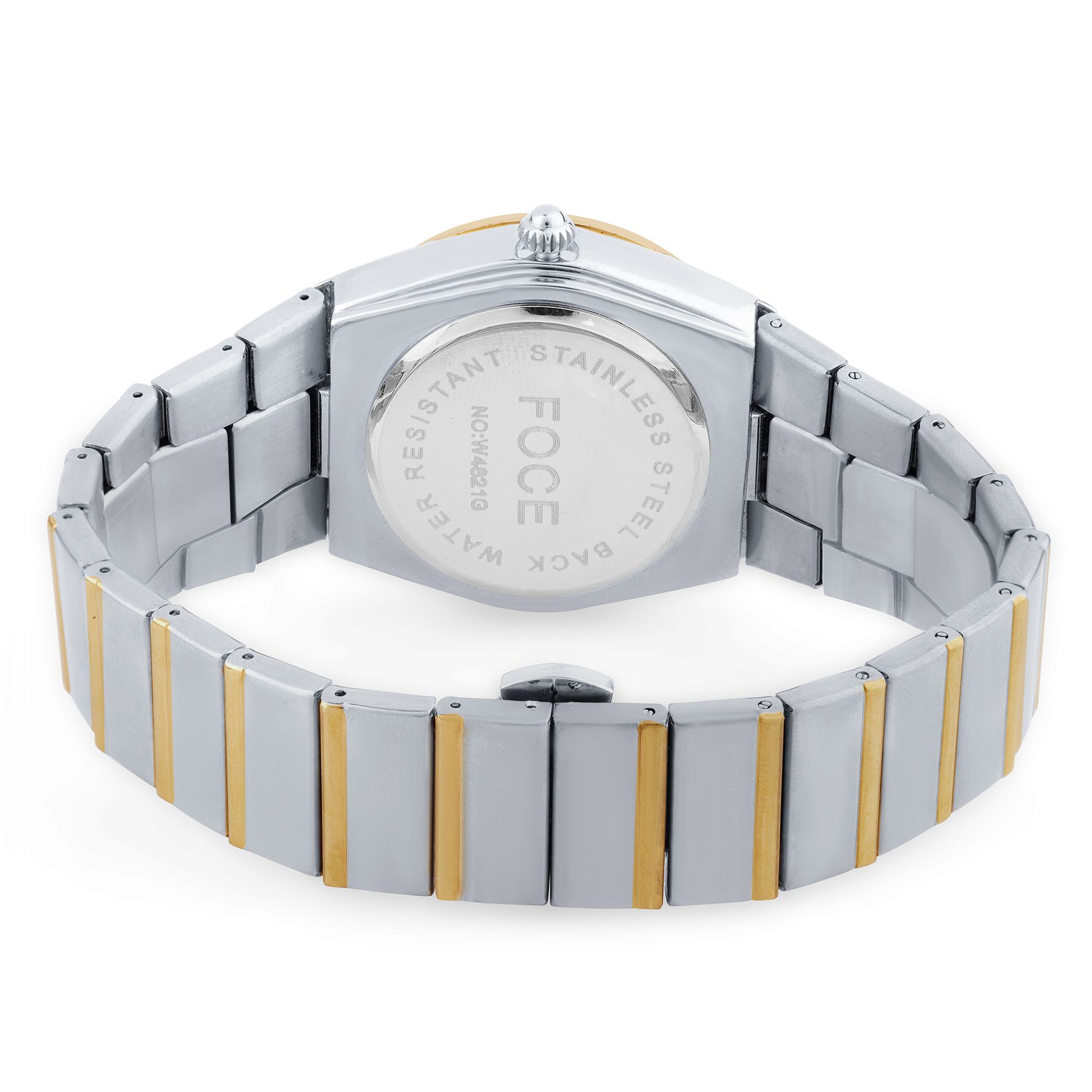 Make a bold impression with the FOCE Men’s Two Tone Silver/Golden Analog Watch, featuring a golden dial, diamond-studded bezel, and matching two tone silver / golden stainless steel strap.