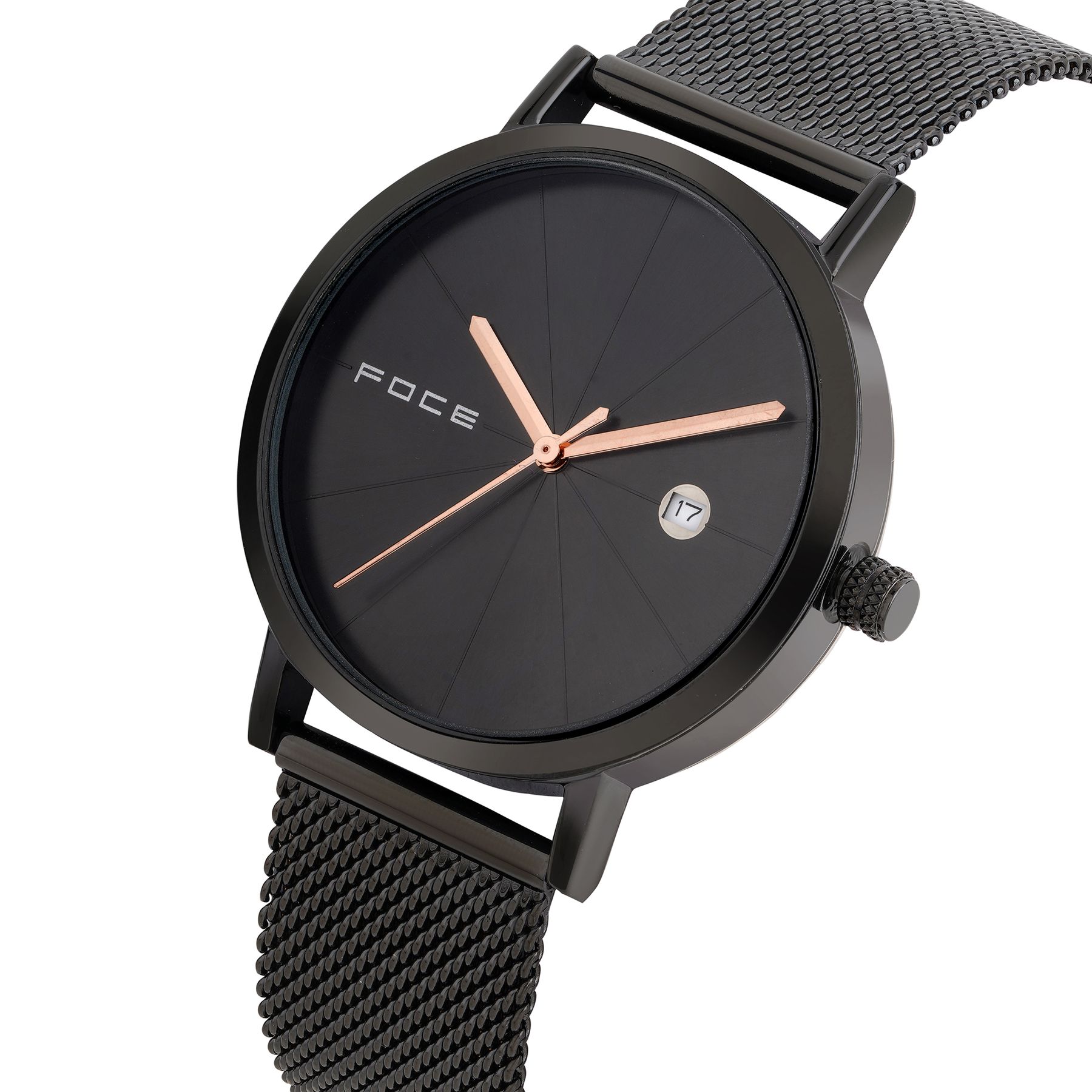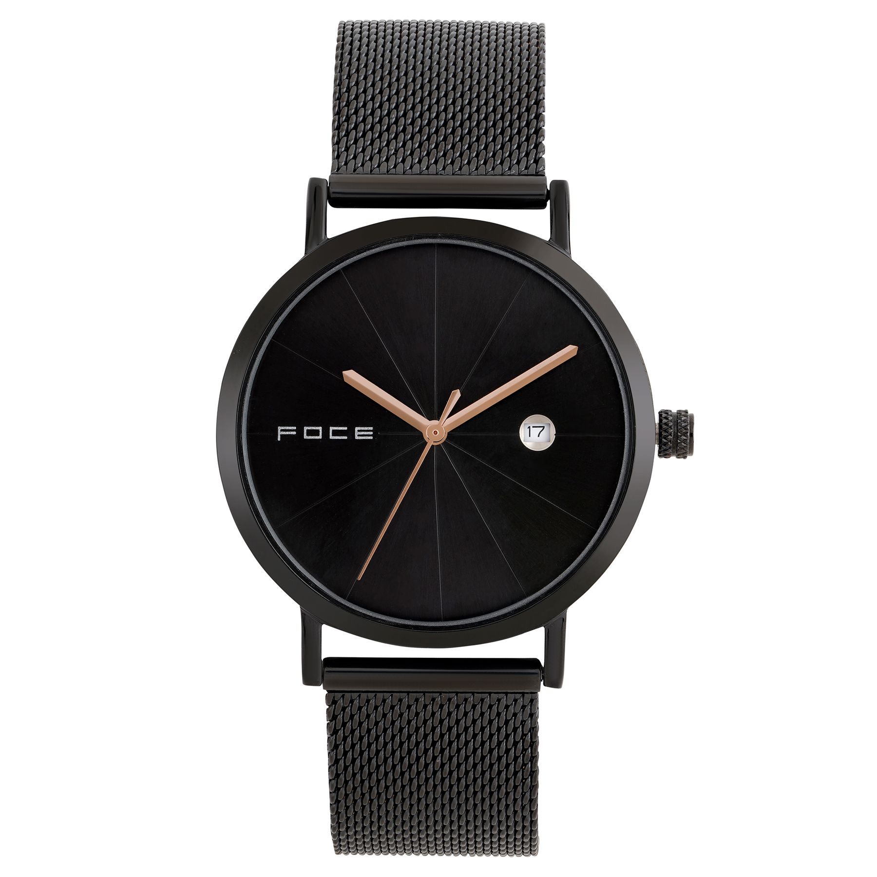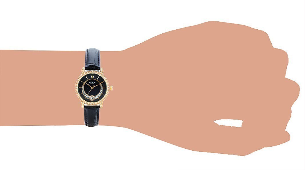 FOCE Black Dial Leather Strap Watch for Women exudes bold elegance with a sleek, sophisticated design.