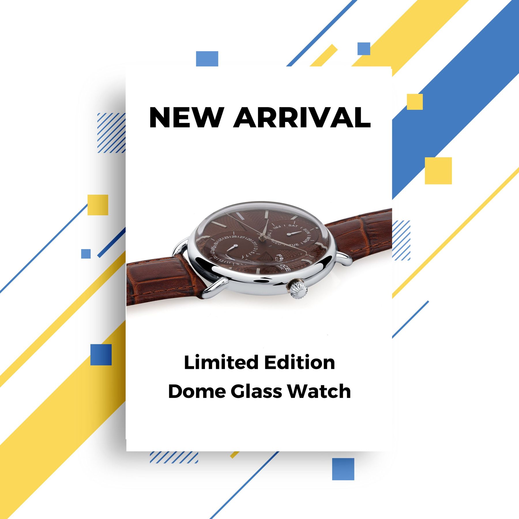 Curved Dome Glass, Brown Leather Strap Watch