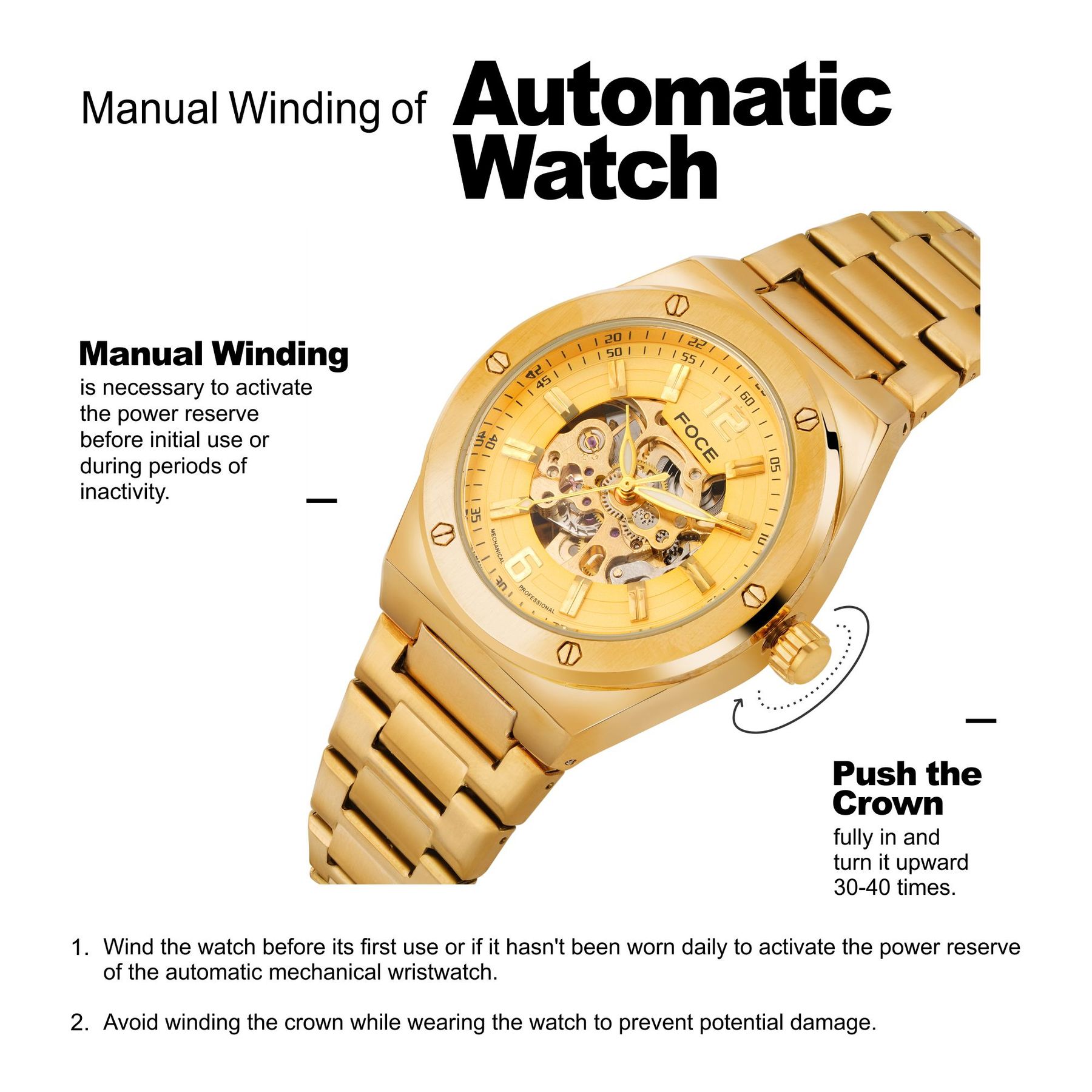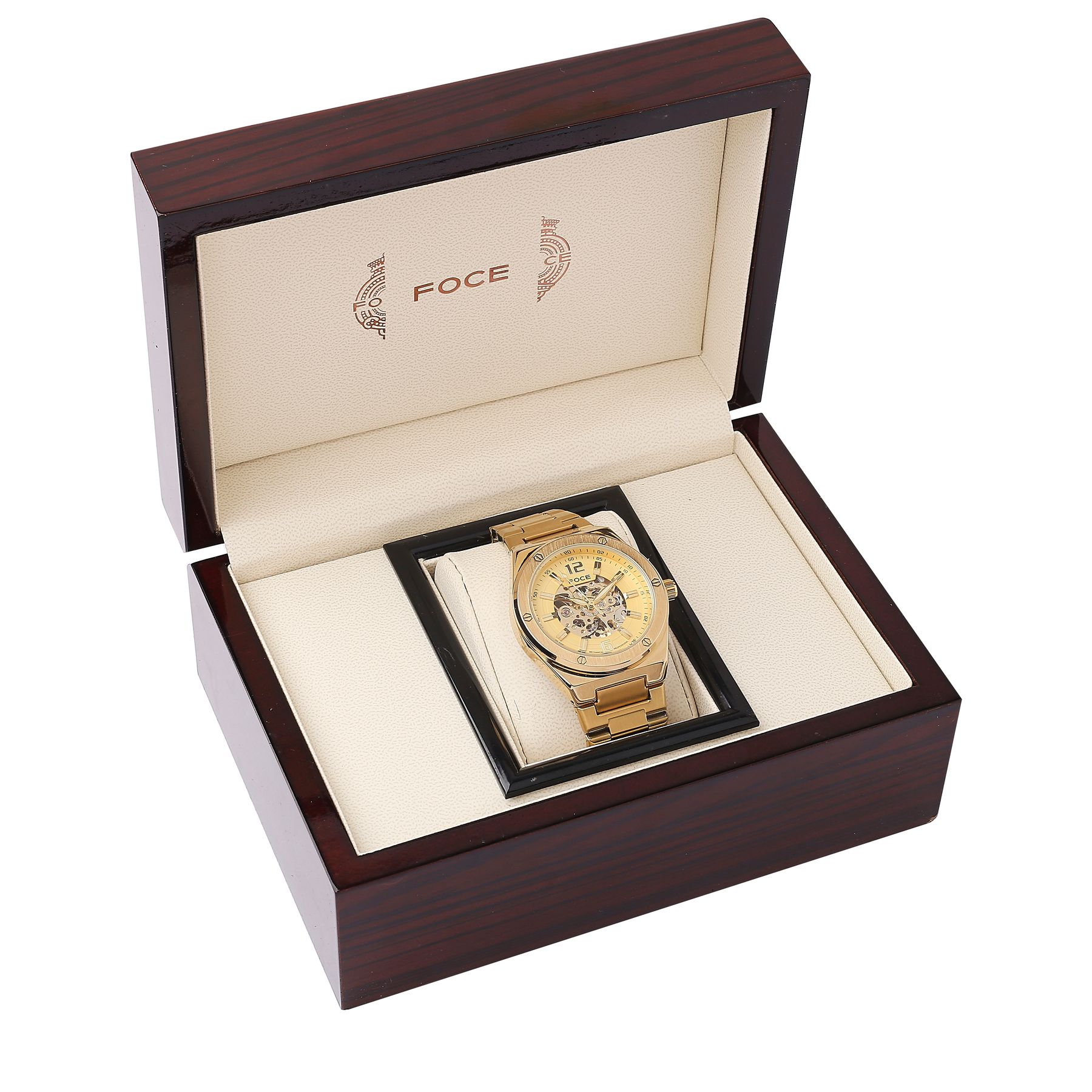 Discover refined sophistication with FOCE’s Golden Automatic Wristwatch, featuring a self-winding movement—no battery required.