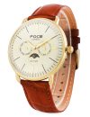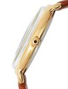 Crafted with a rich brown leather strap and gunmetal-plated stainless steel case, it blends precision engineering with timeless elegance.