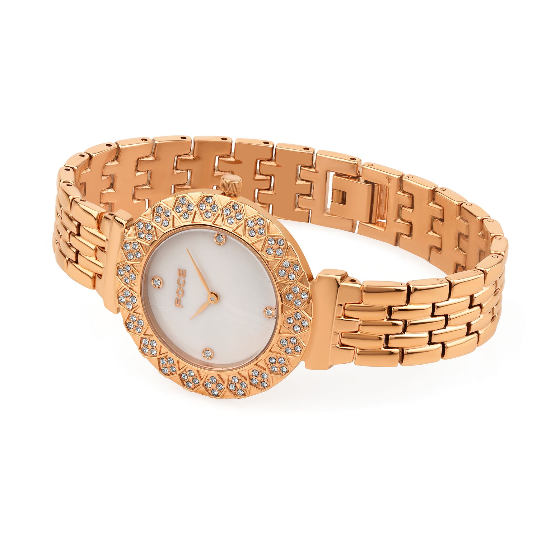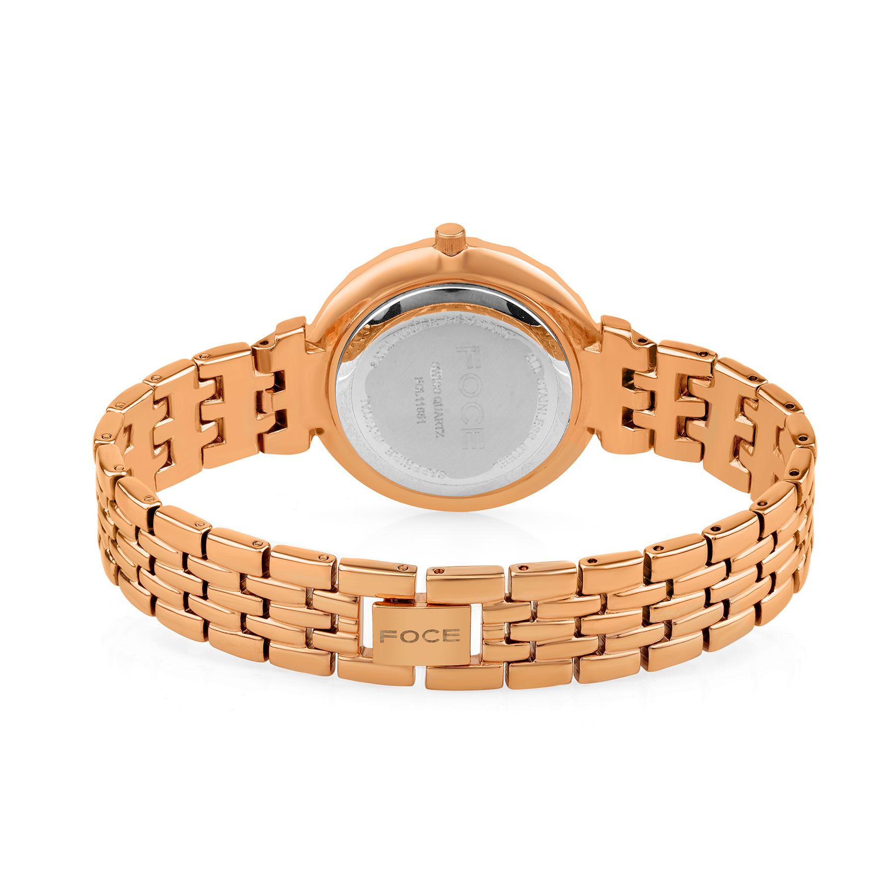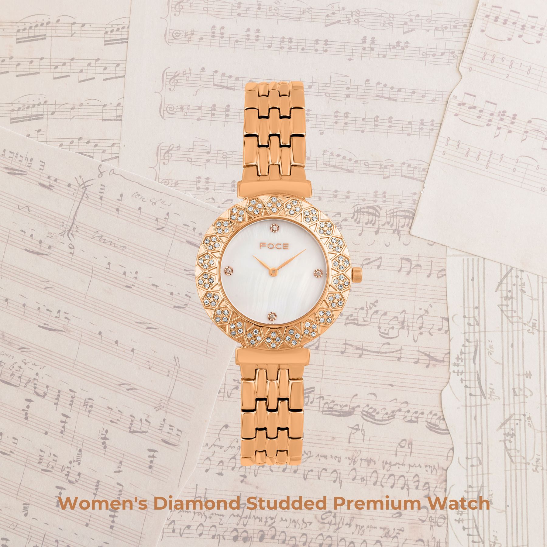 Experience refined glamour with FOCE’s Diamond-Studded Rose Gold Wrist Watch for Women, crafted with a radiant white dial and sapphire glass.