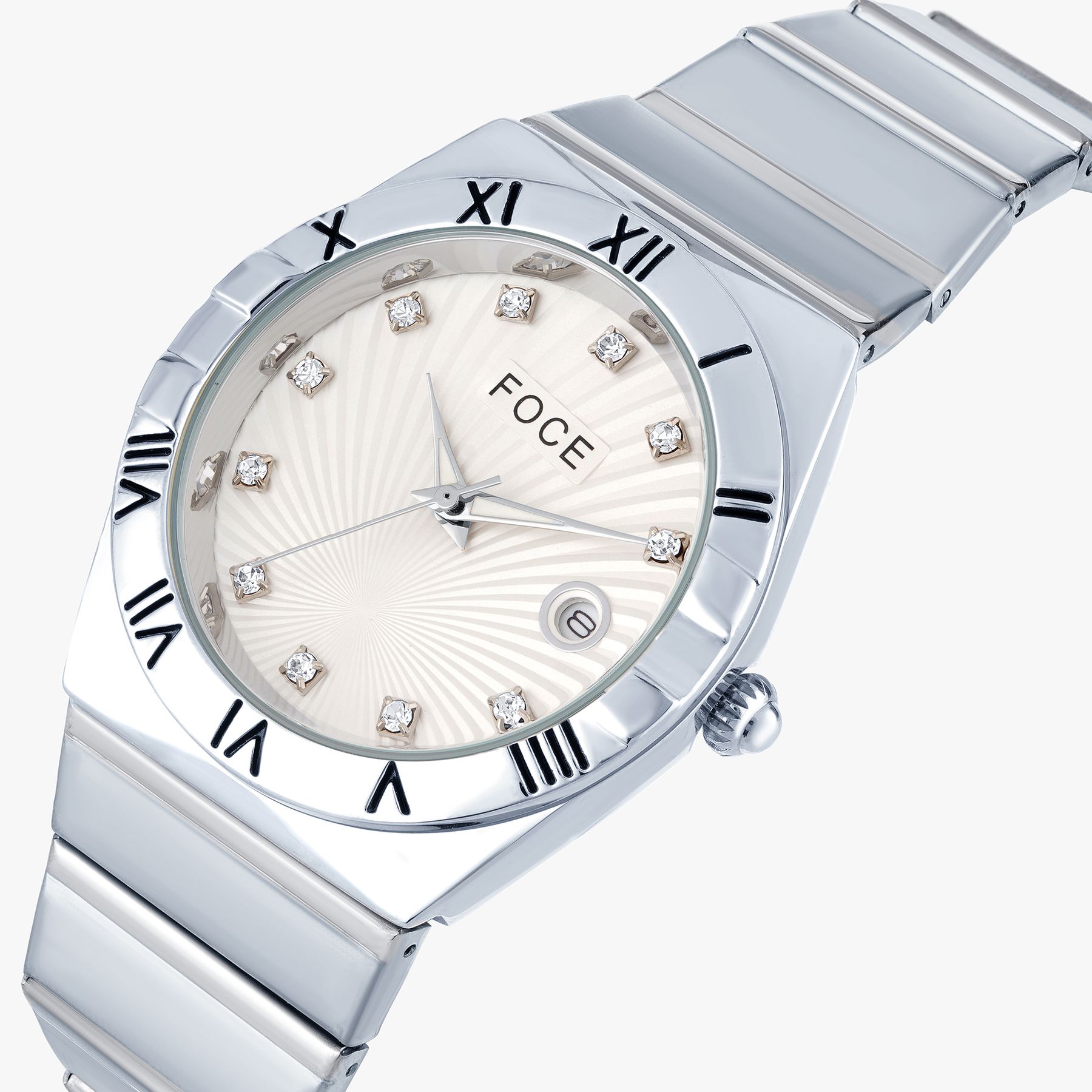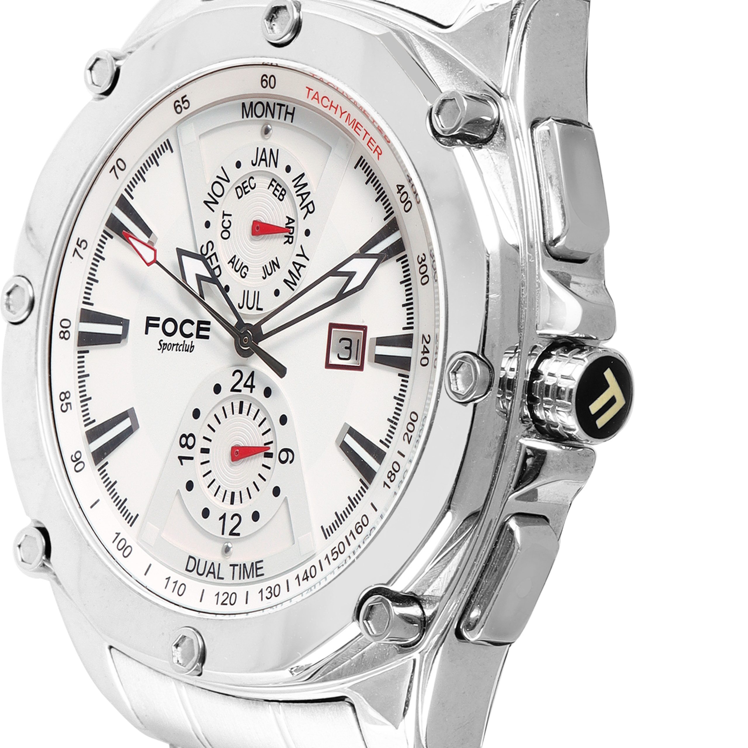 The FOCE White Dial Chronograph combines sophisticated style with precise functionality, featuring a crisp white dial, multiple subdials, and a premium stainless steel metal belt. Crafted for durability and elegance, this water-resistant timepiece embodies 27 years of Korean horological expertise, perfect for the modern gentleman.