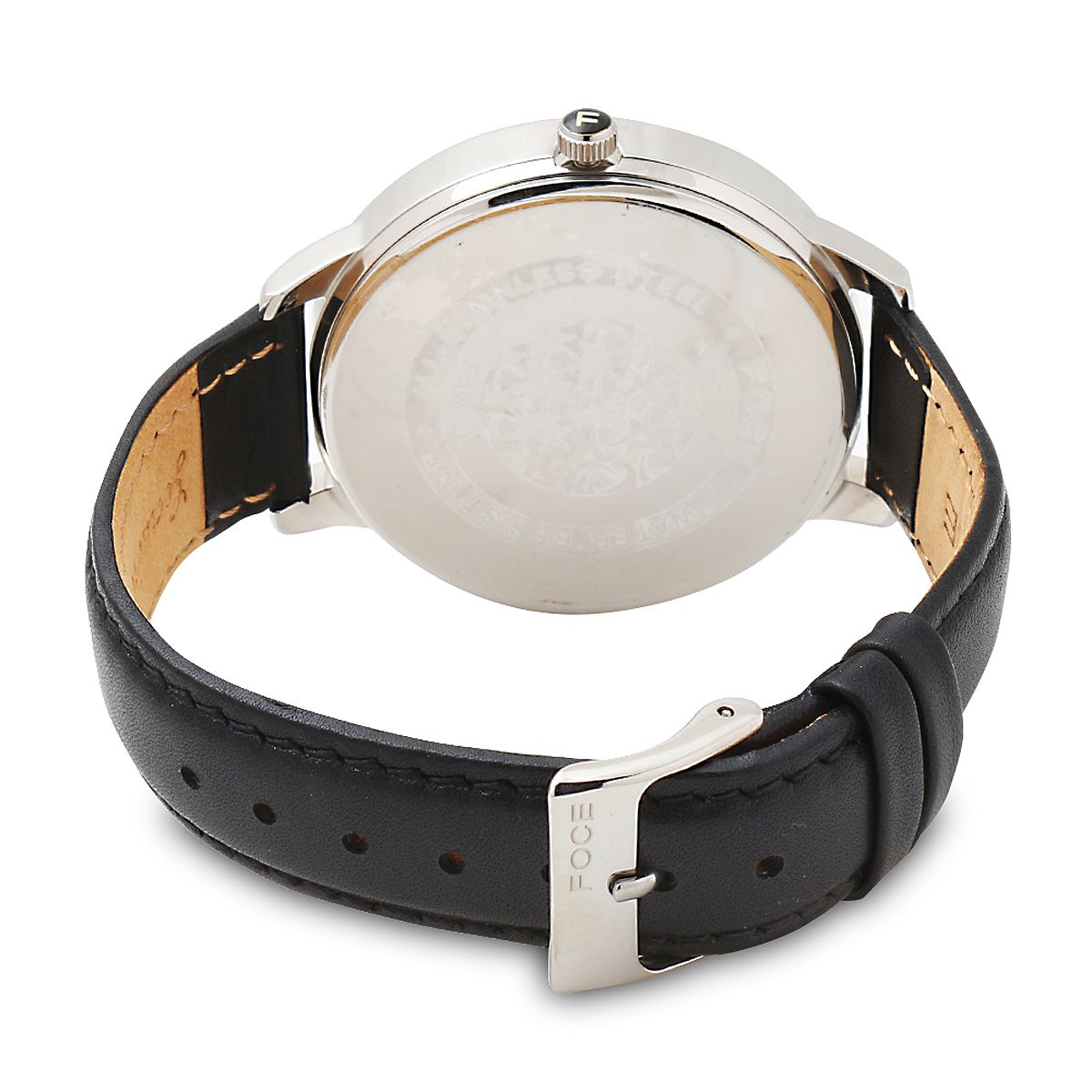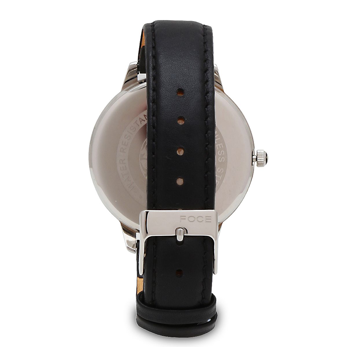 Refined simplicity meets timeless elegance in this FOCE women’s analog watch, featuring a deep white dial and a black sleek leather strap.