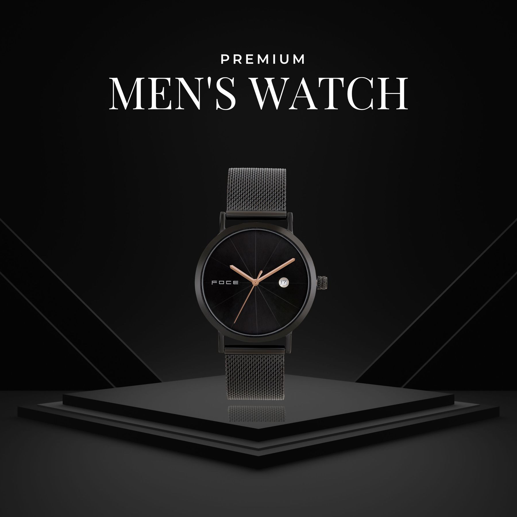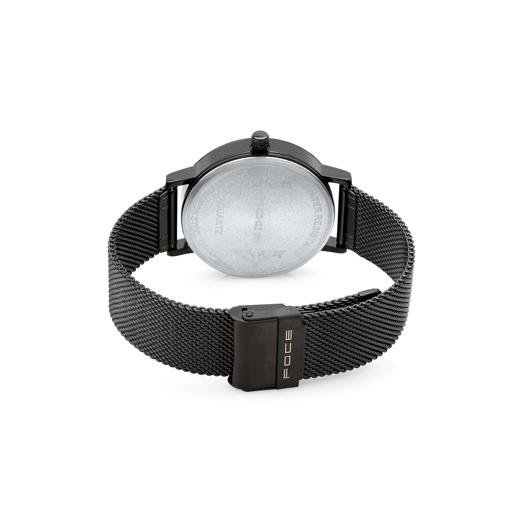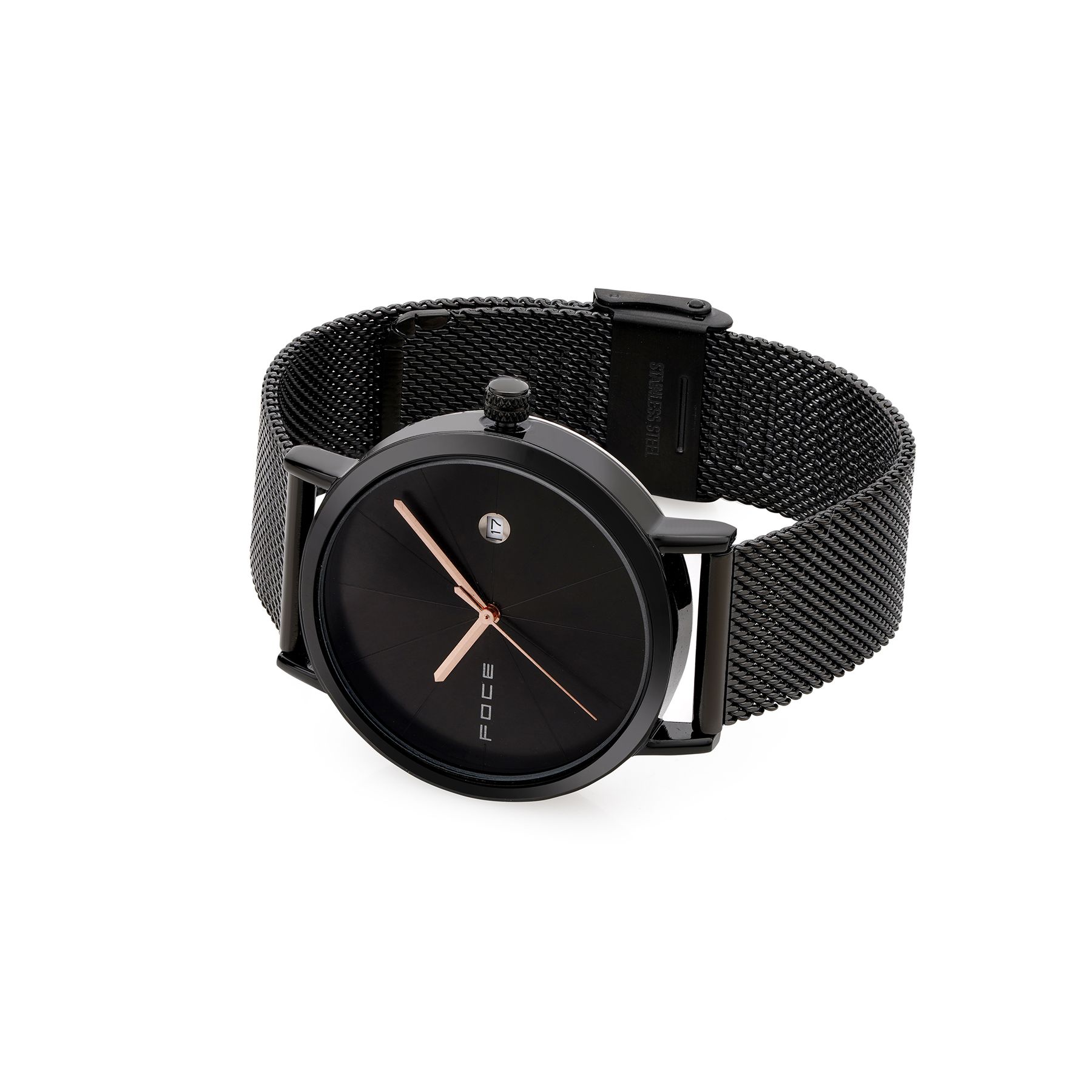 Command attention with the FOCE Men’s Black Multifunction Watch, featuring a bold black dial, sleek black mesh strap, and a distinct date window.