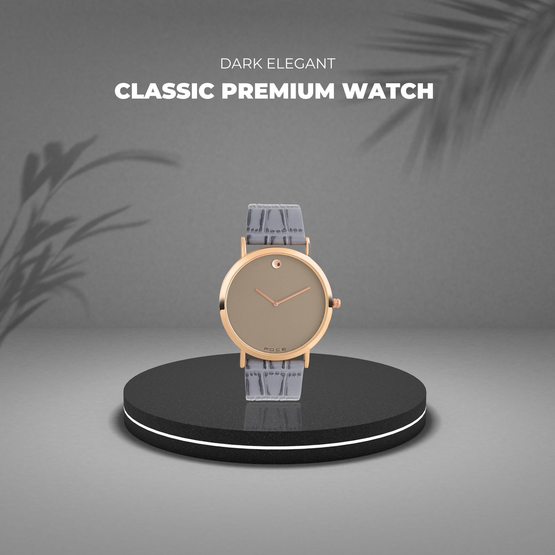 Rose Gold Slim Wrist Sleek Grey Leather Strap Watch