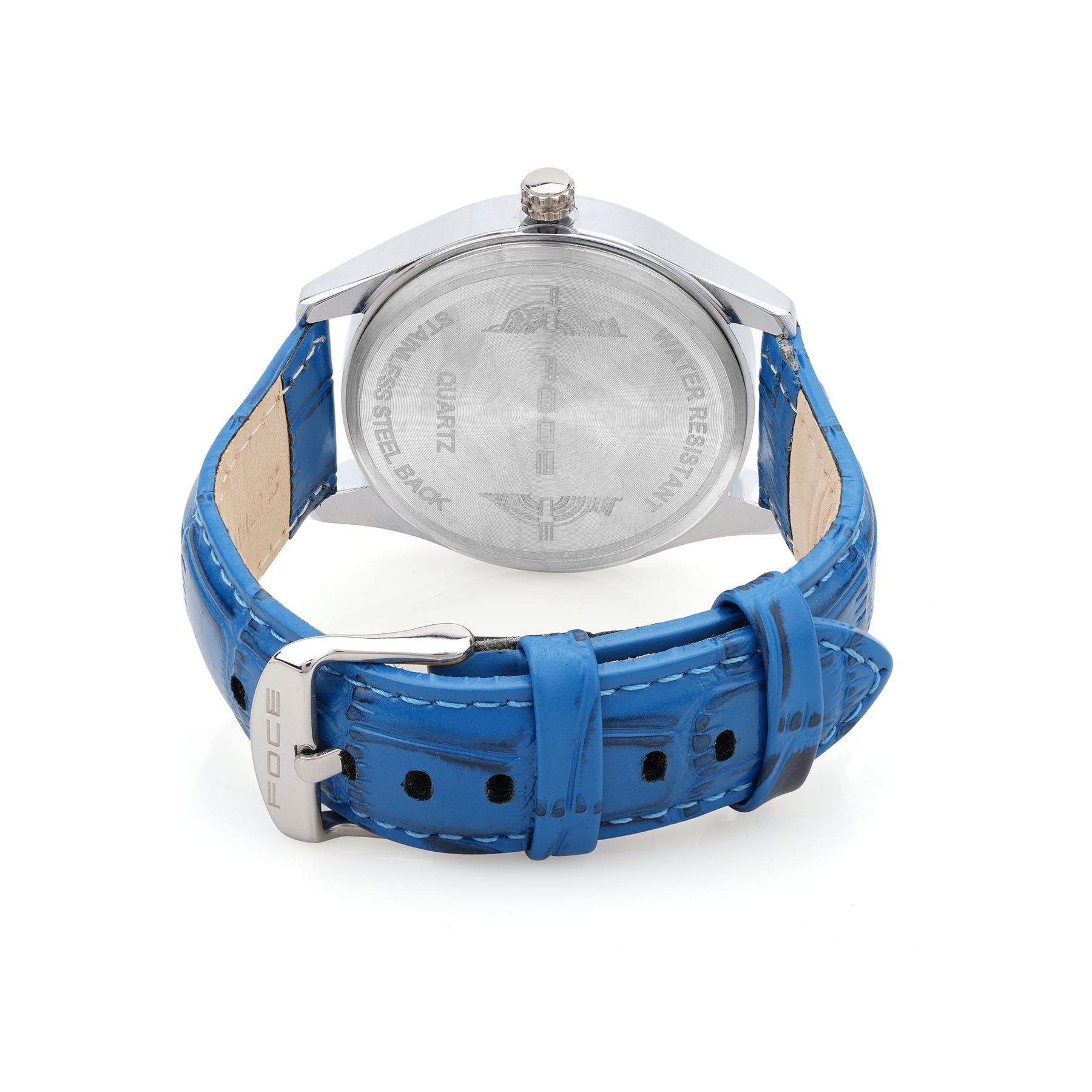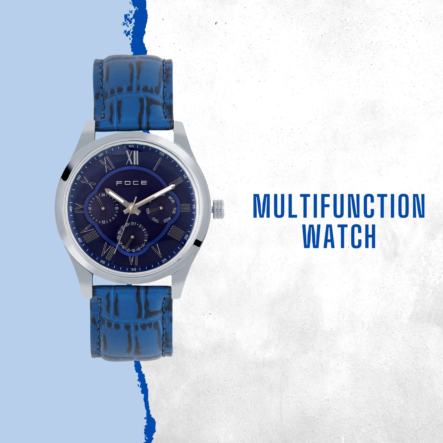 Command attention with the FOCE Men’s Silver Multifunction Watch, featuring a deep blue dial, silver-tone case, and sleek blue leather strap.