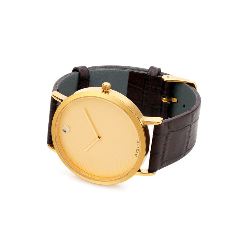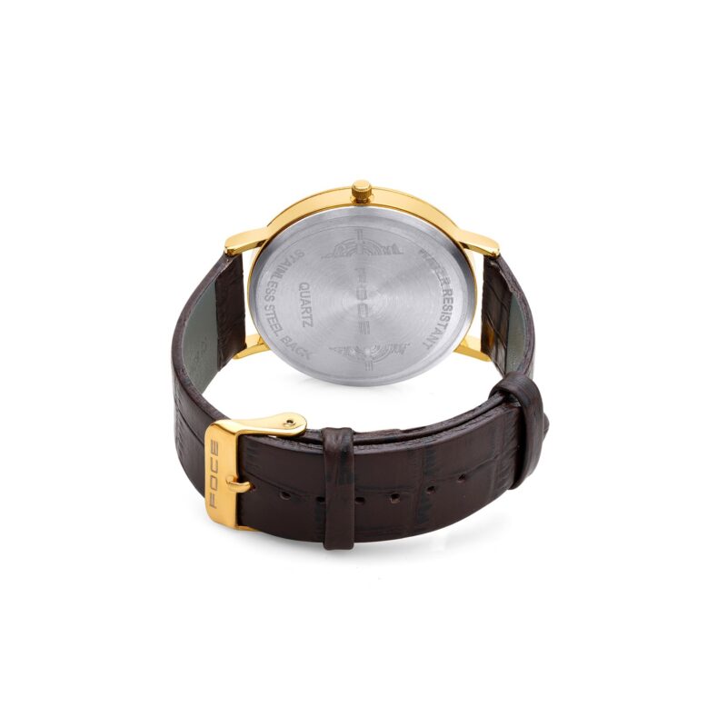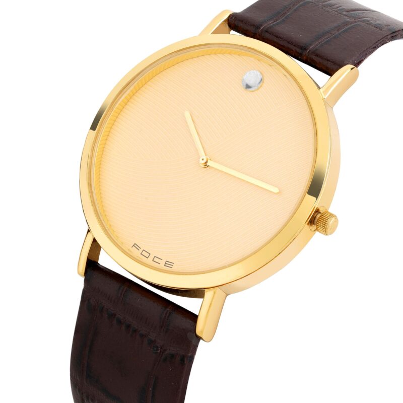 Timeless and elegant, the FOCE Men’s Golden Slim Watch features a radiant gold dial, polished gold case, and a rich brown leather strap.