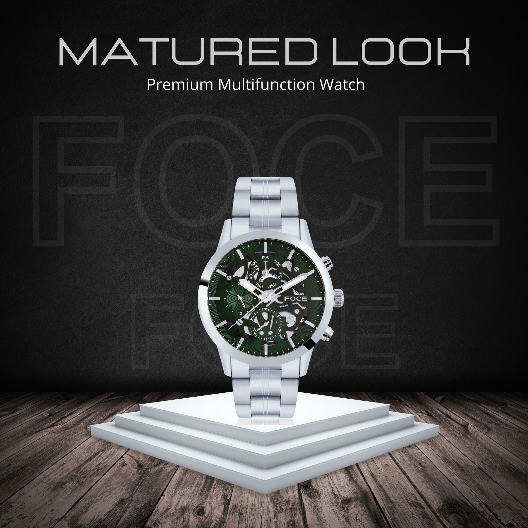 Discover timeless elegance with the FOCE Men’s Multifunction Watch, crafted in matte silver stainless steel.