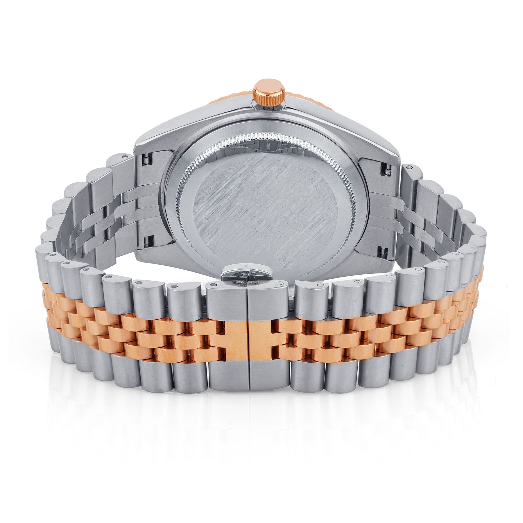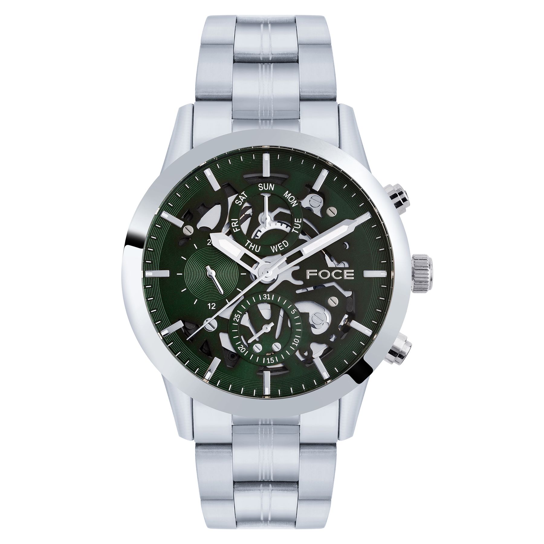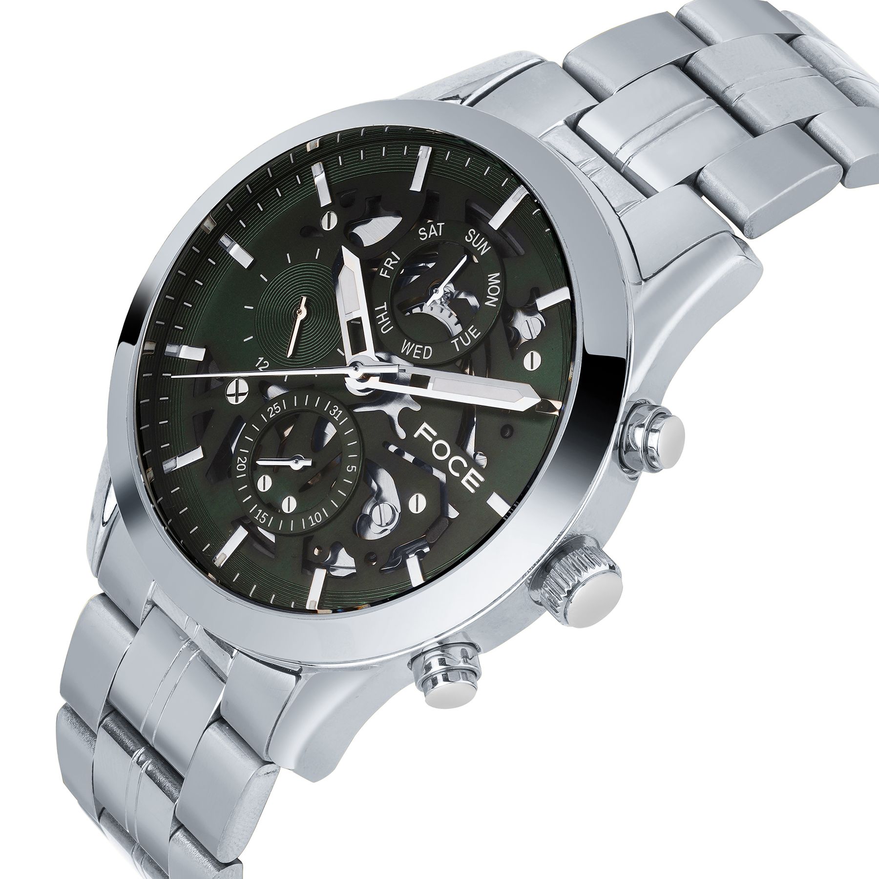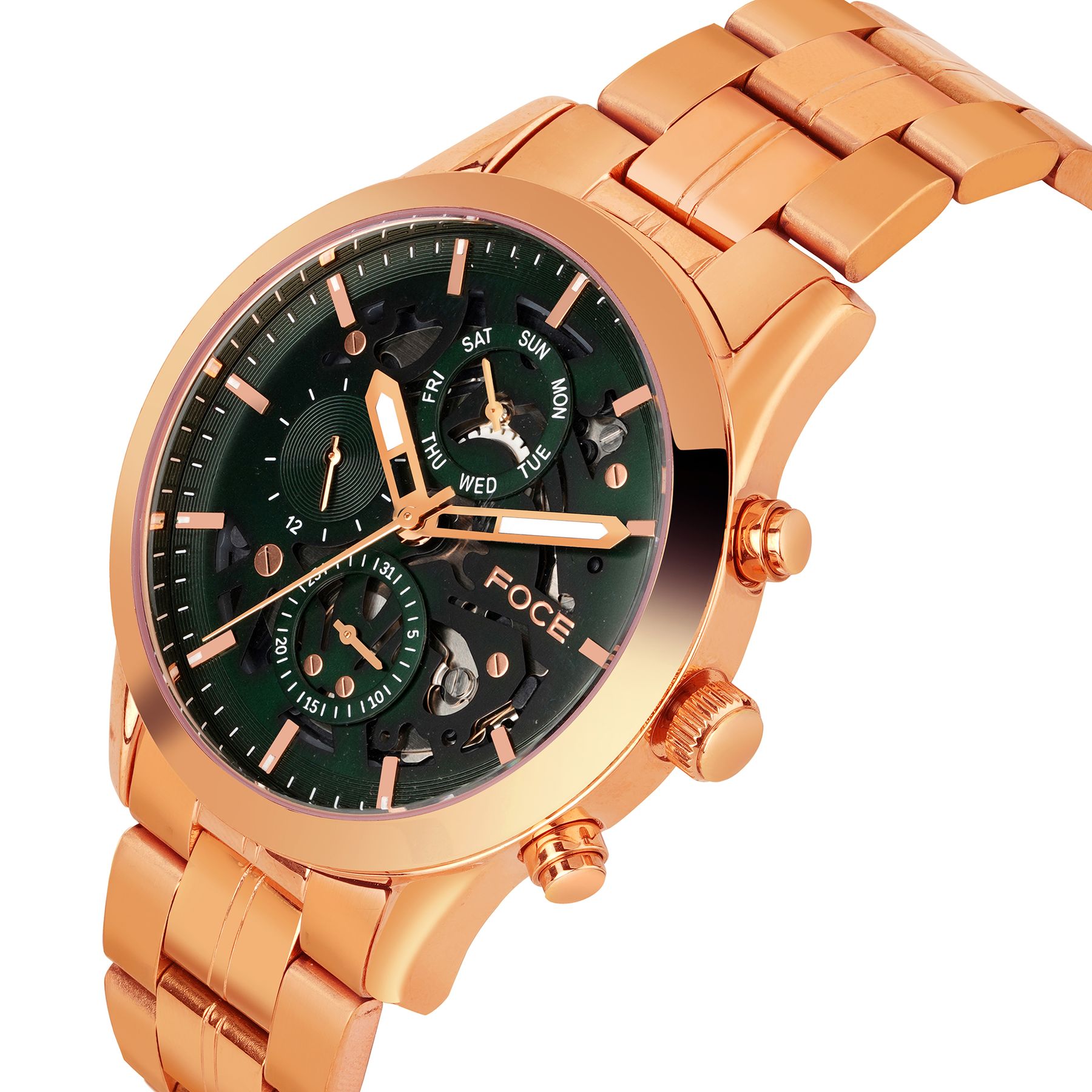 Experience timeless elegance with this FOCE premium timepiece, crafted in pure stainless steel and enriched with bold two tone silver & rose gold plating.