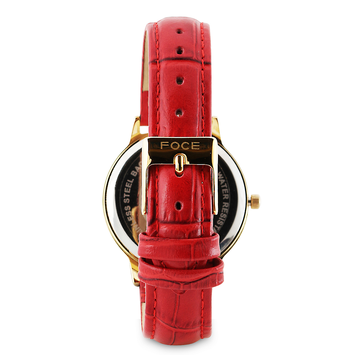 Red Dial Leather Strap Watch For Women