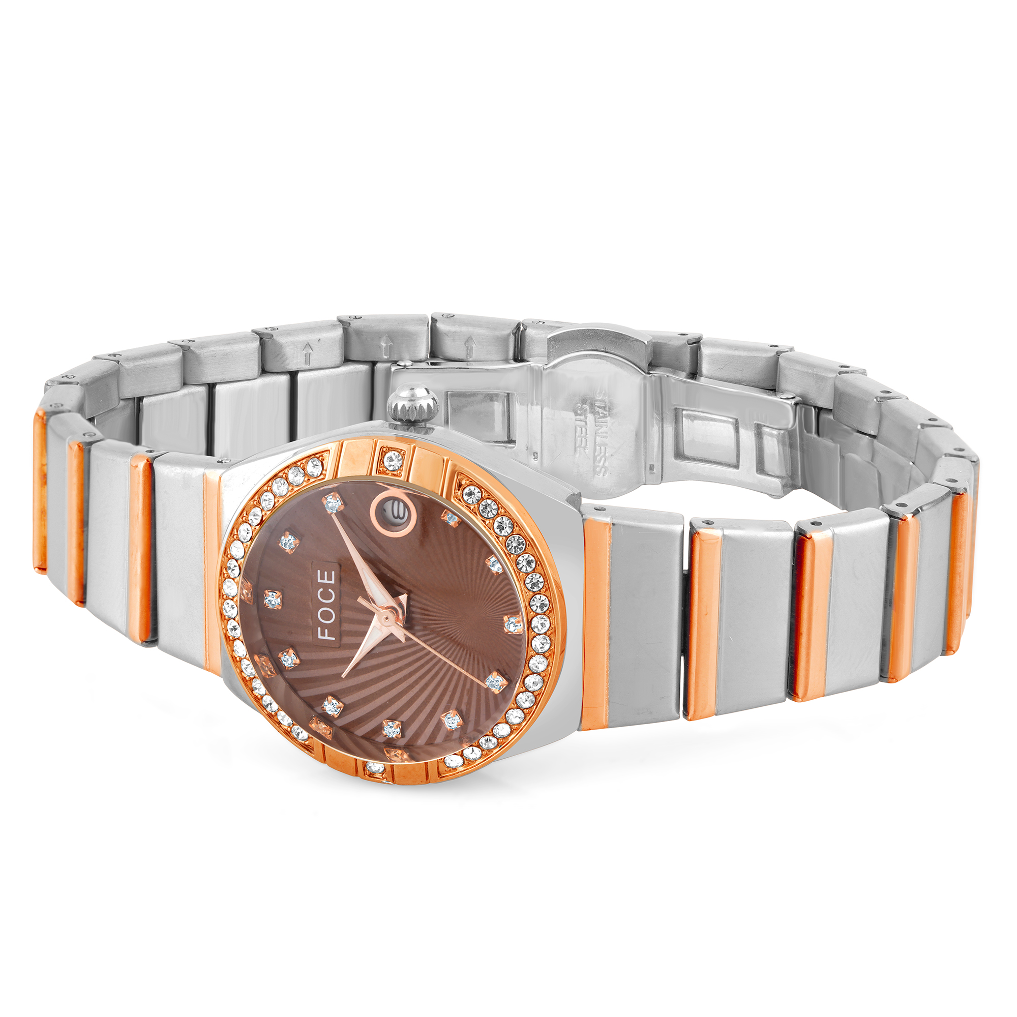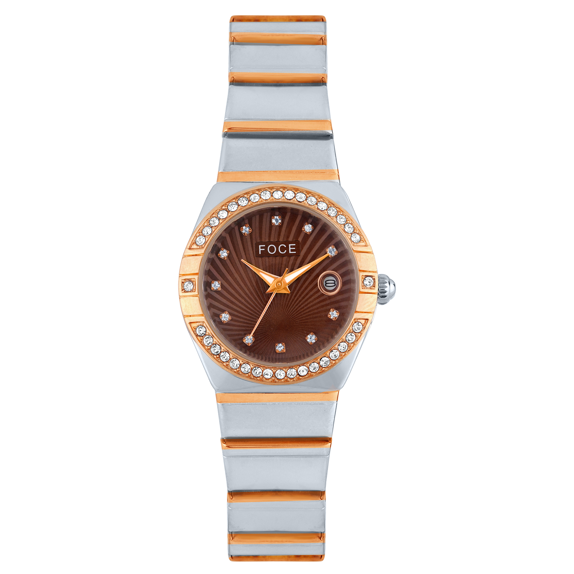 Case & Strap: Golden stainless steel case with rose-gold stainless steel strap