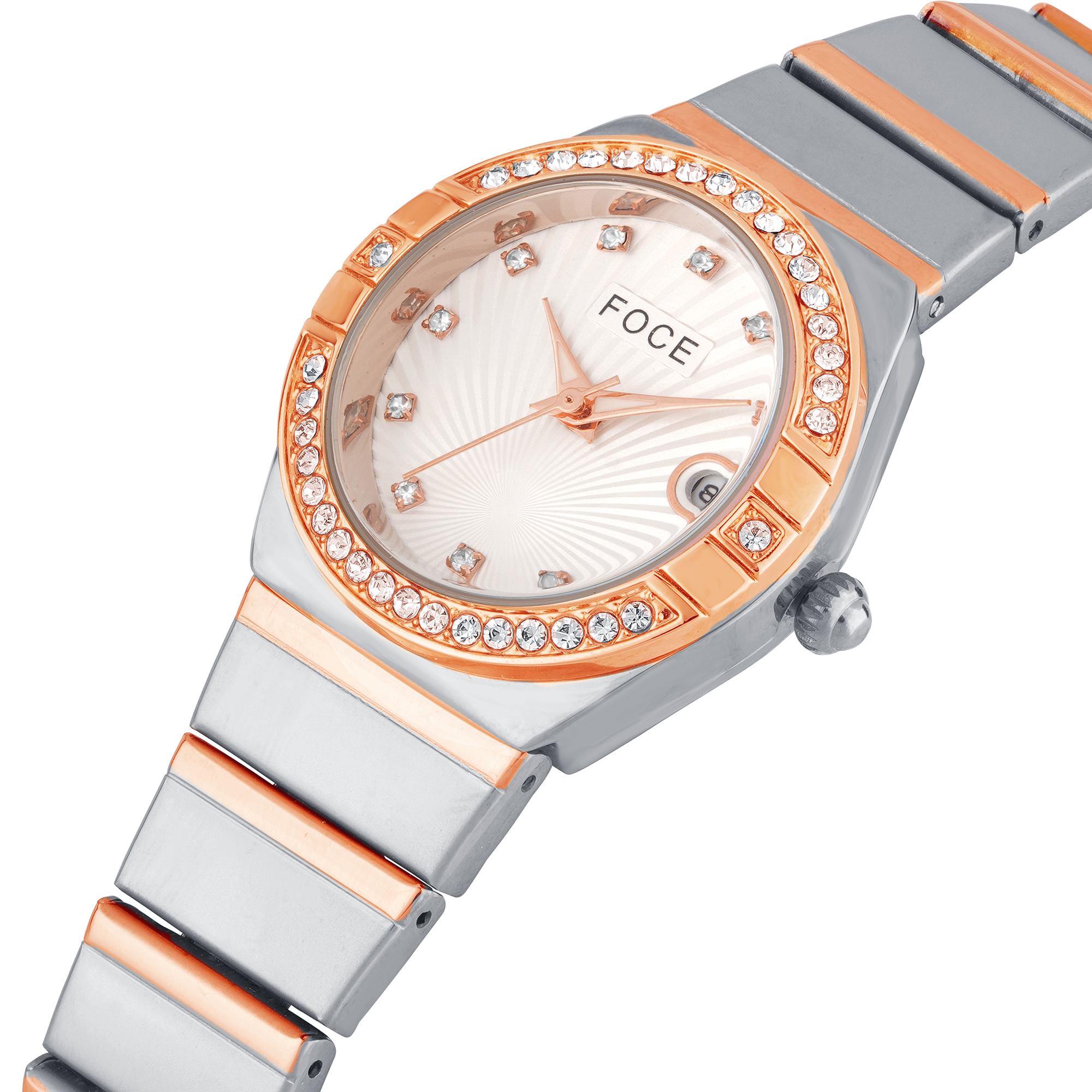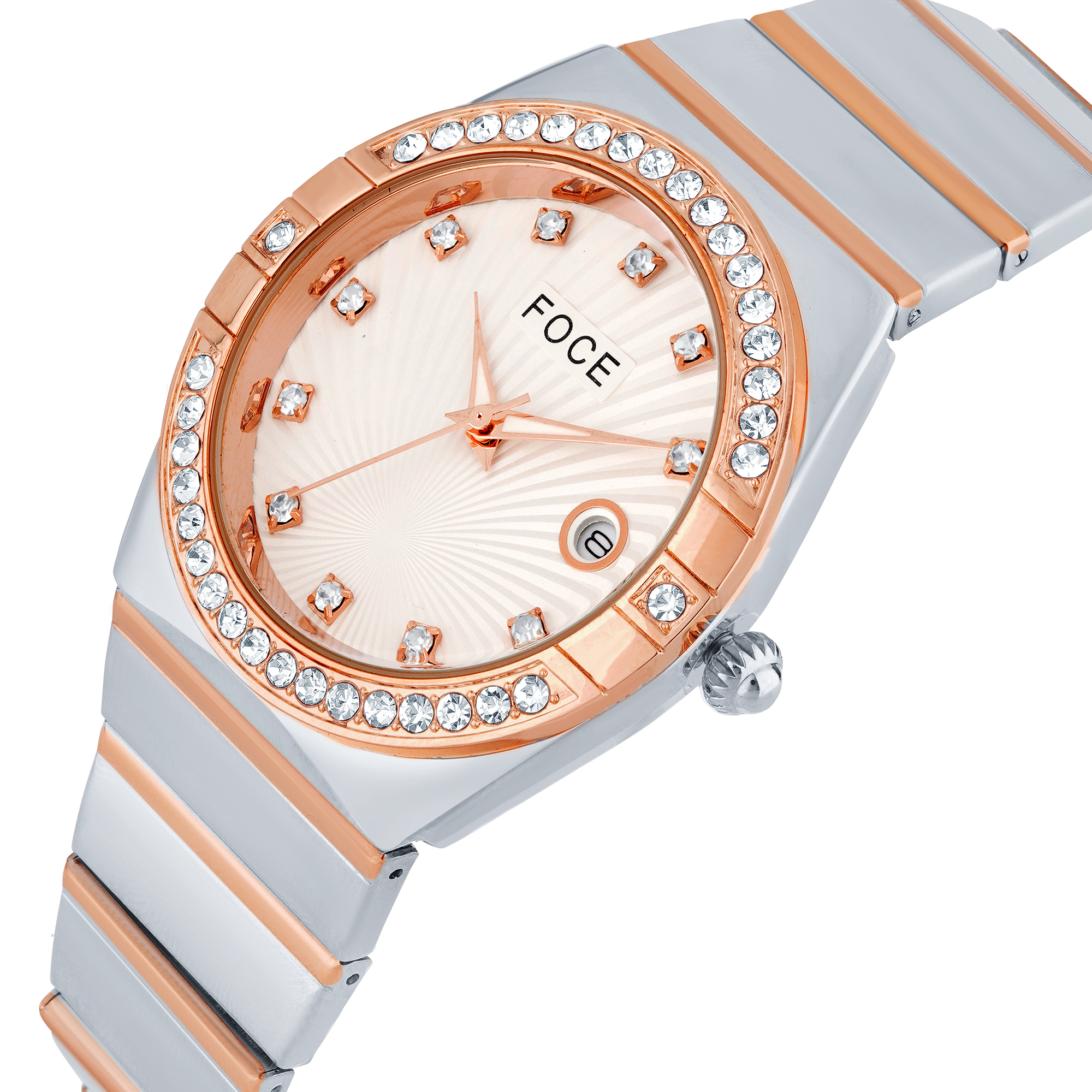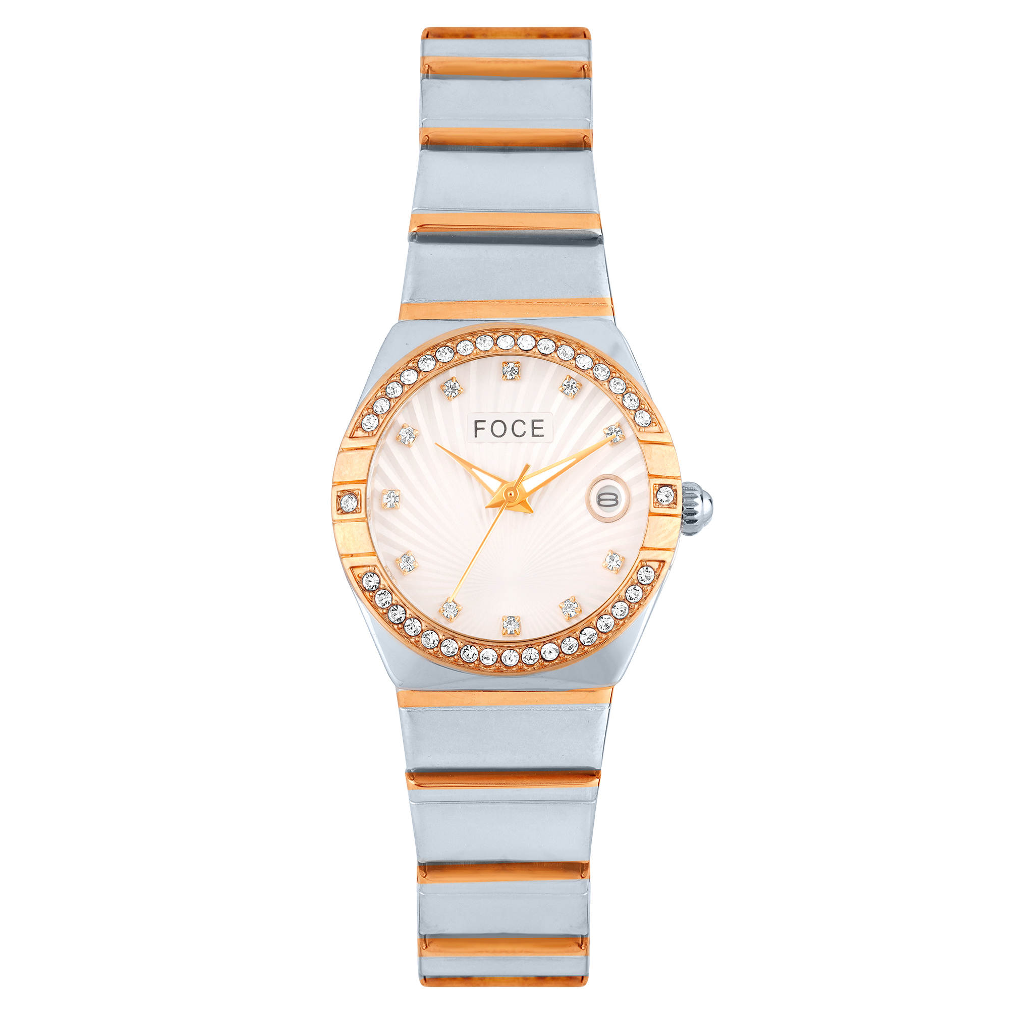 Case & Strap: Golden stainless steel case with rose-gold stainless steel strap