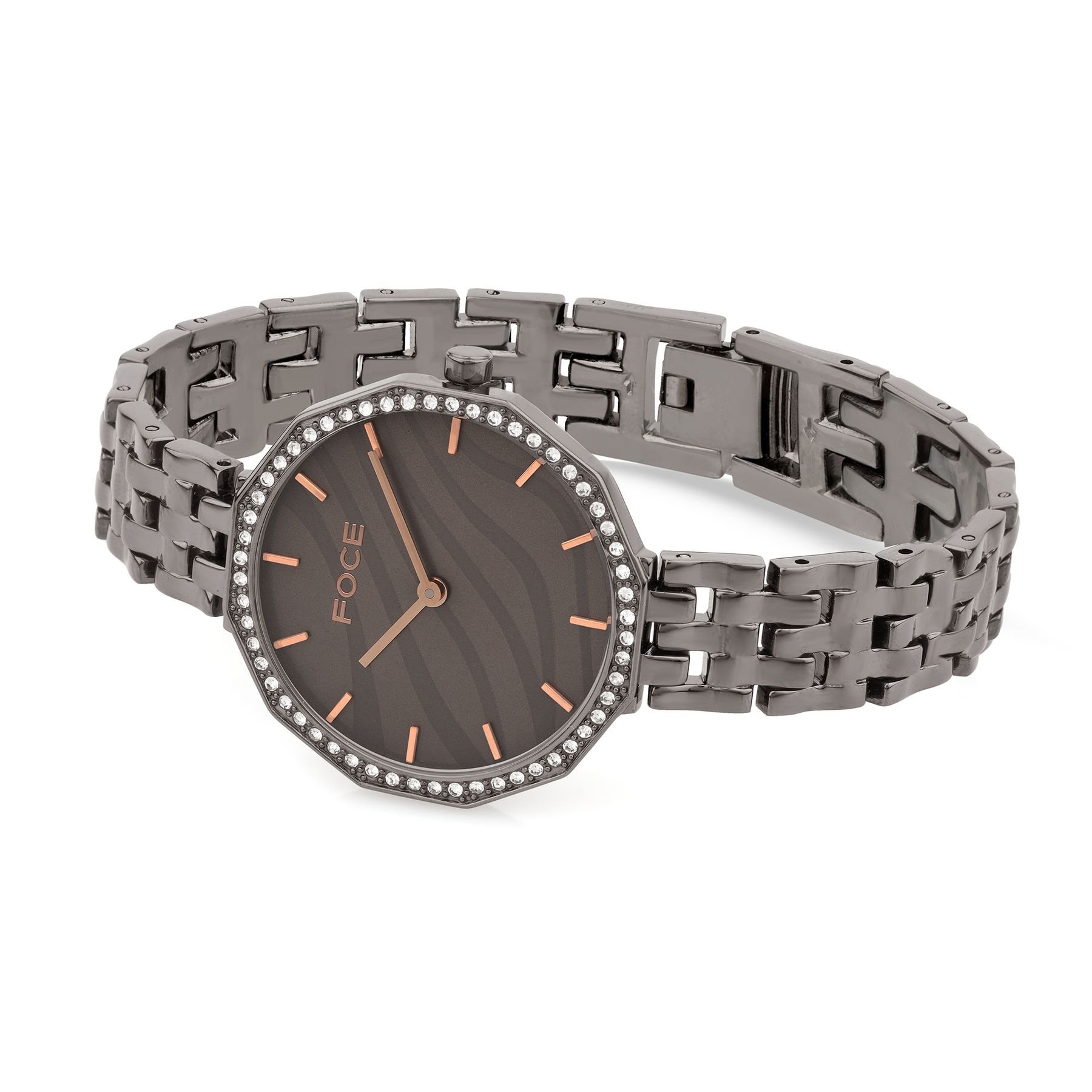 Grace your wrist with the FOCE Women’s Diamond-Studded Watch, featuring a stunning grey dial and dodecagon bezel.