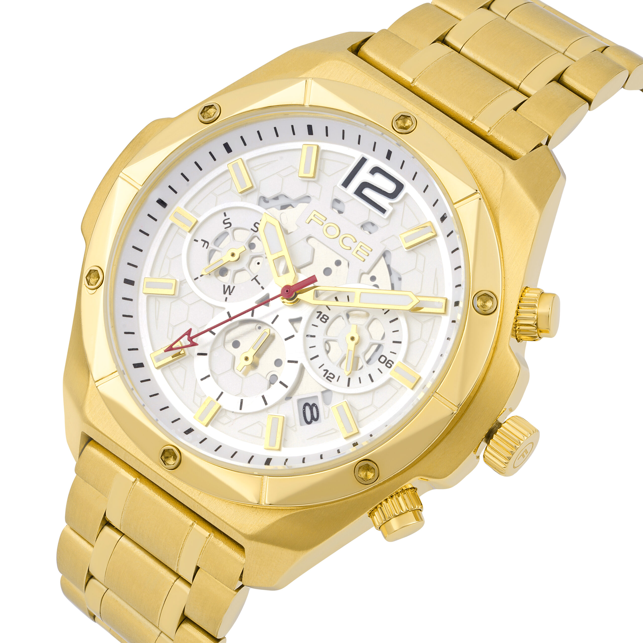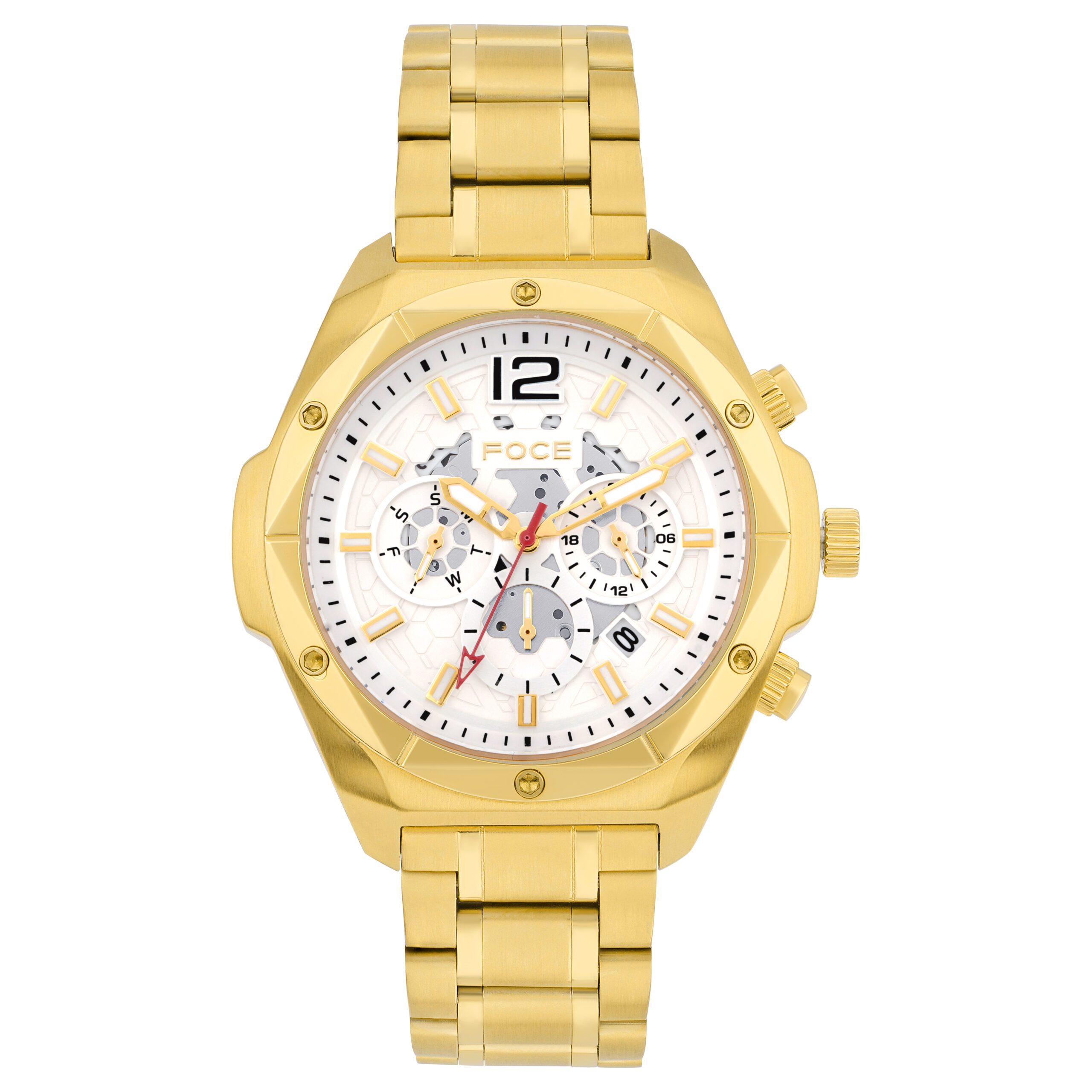 Metallic Brown Watch – Day-Date-Hour, Metal Strap